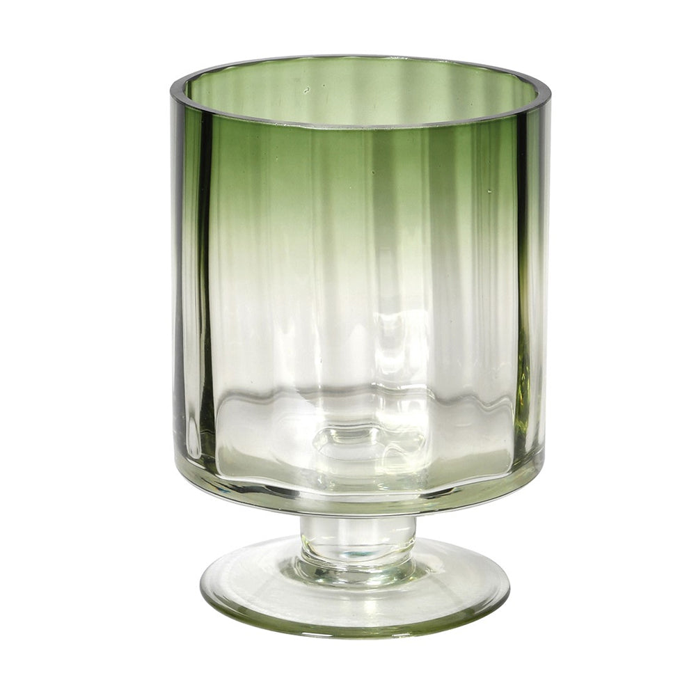 With its stylish, green gradient, this candle holder is thoroughly lovely and will make a beautiful impression upon your space. Place a candle inside and watch as the light dances across its rippled surface in a truly attractive display.