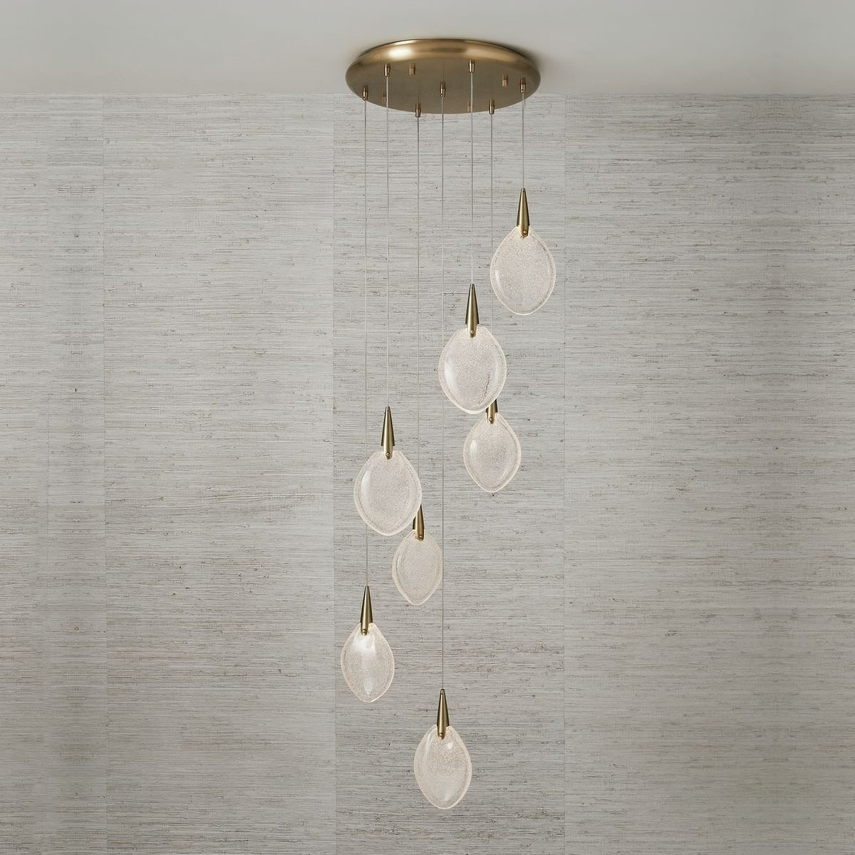 With its organic forms and refined materials, the Deluge Pendant Light evokes the beauty of falling rain, bringing elegance, motion, and subtle brilliance to any space.