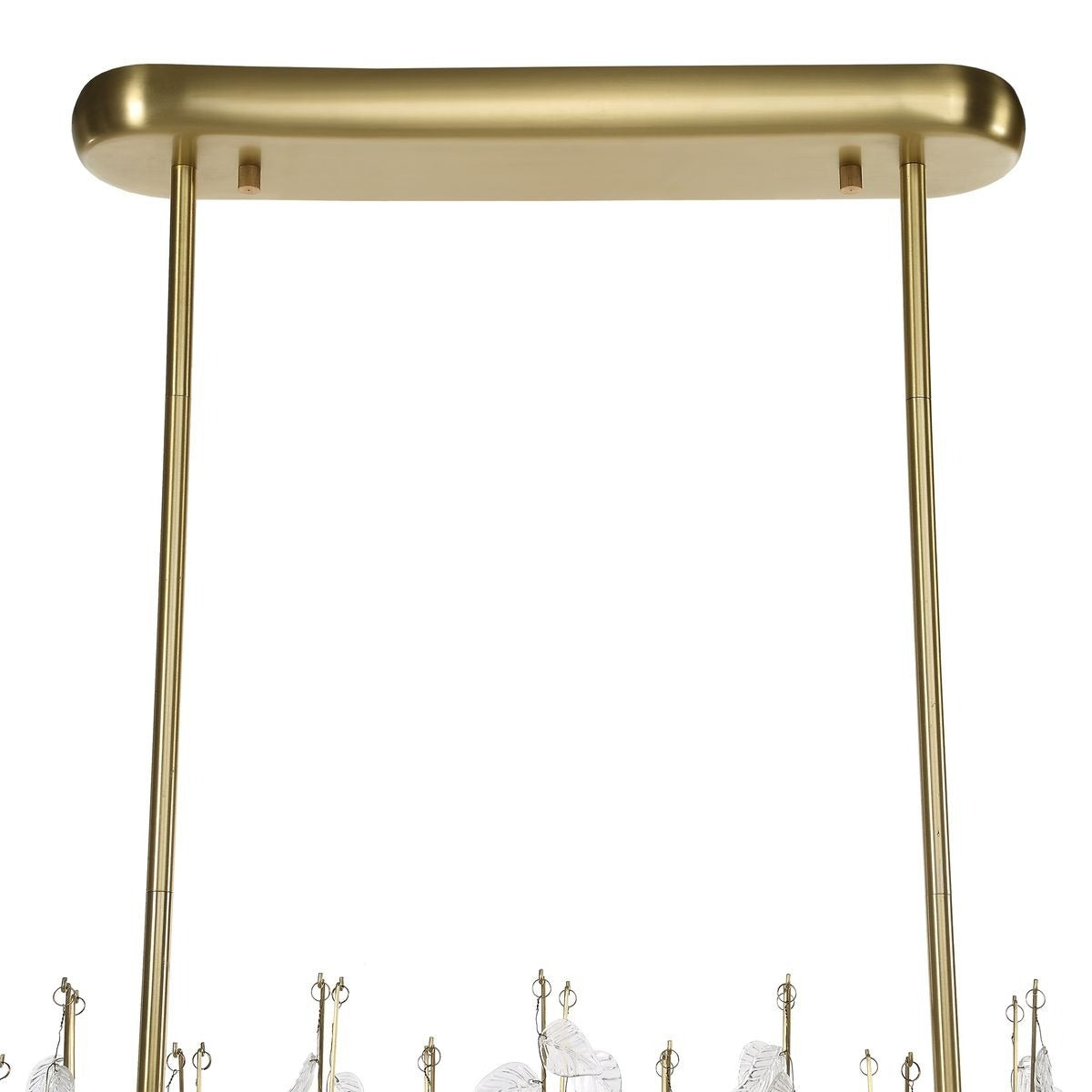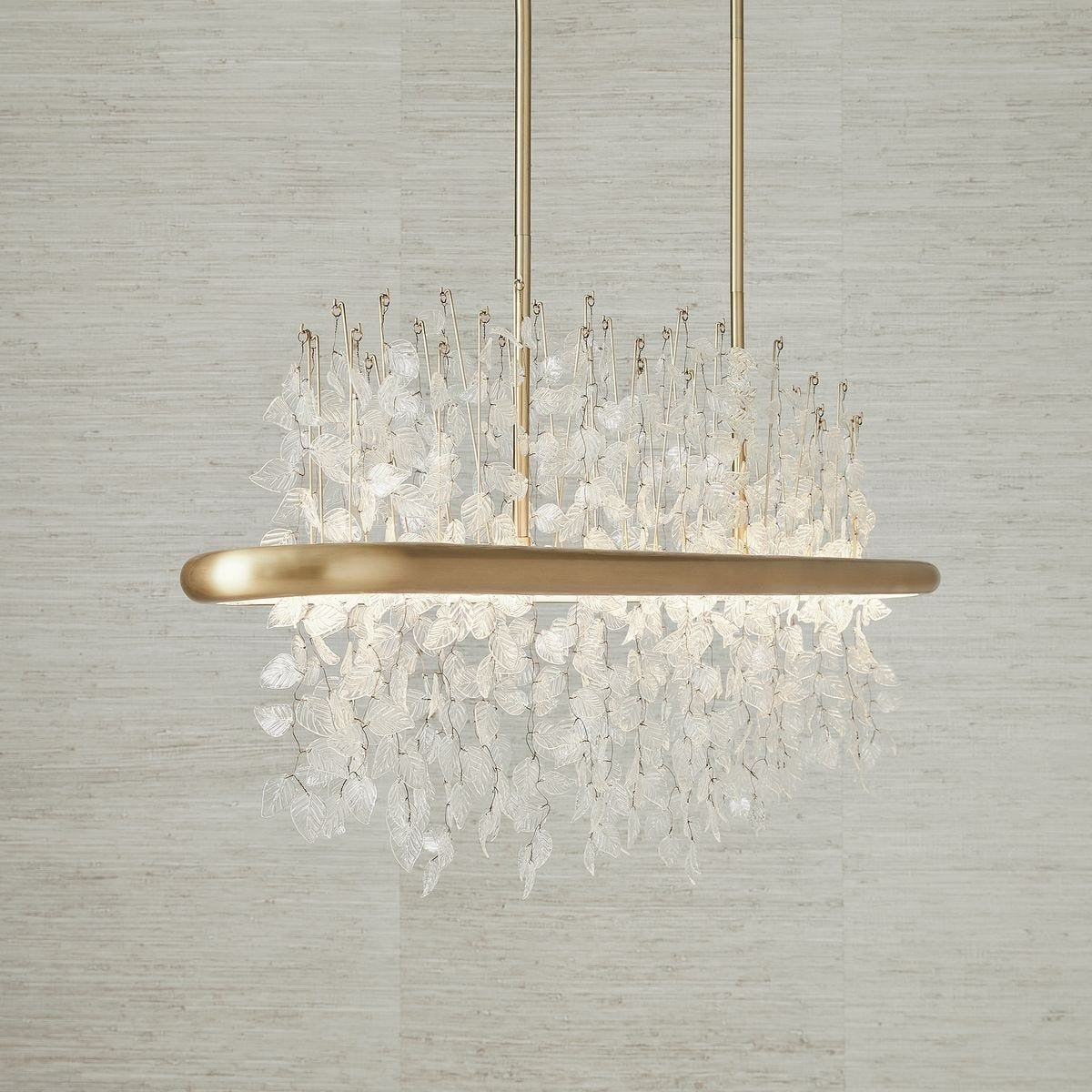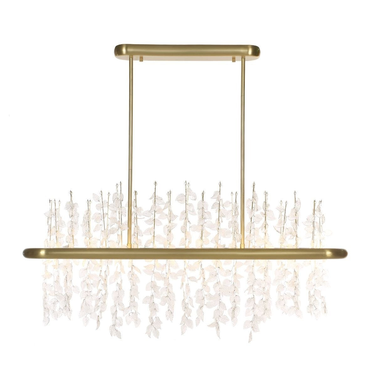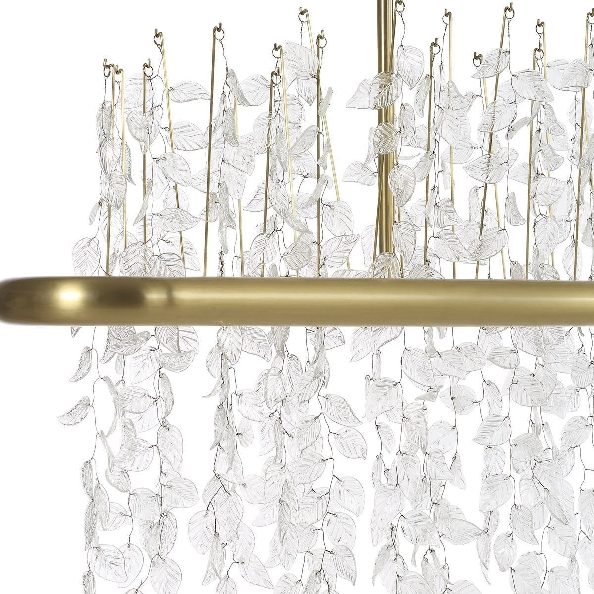 This captivating fixture features a cascade of clear glass leaves, artfully arranged to evoke the look of trailing vines. Suspended from a sleek oval frame in a rich brass finish, it offers a modern interpretation of nature-inspired design. Integrated LED lighting casts a soft, ambient glow, highlighting each delicate detail and making it a stunning centrepiece for dining rooms, kitchen islands, or spacious hallways.