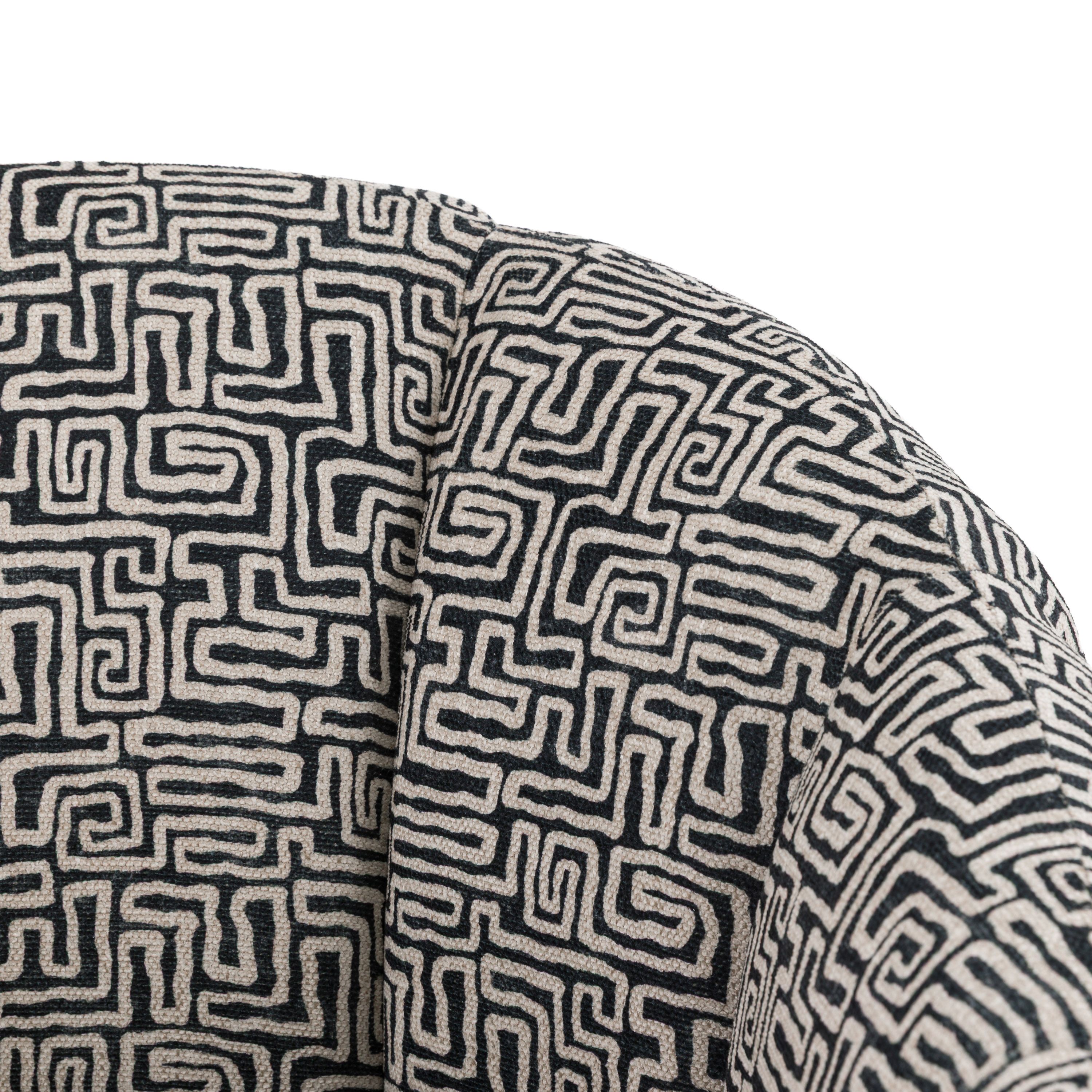 This stunning piece features a barrel-back design that envelops you in ultimate relaxation and support. The distinctive monochrome fabric upholstery, enhanced by intricate channel stitching, adds a touch of sophistication. Ideal for elevating your lounge or creating a luxurious reading nook, it effortlessly combines comfort and elegance.