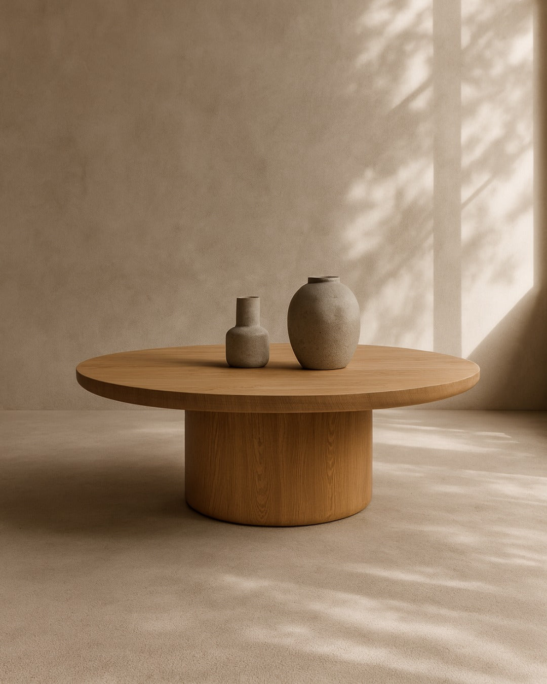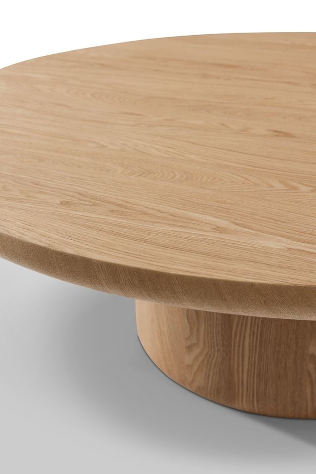 Boasting a wide cylindrical base and a generous round top, it’s crafted in a rich ash oak finish that beautifully showcases the natural grain and warmth of the wood. Its clean lines and soft curves create an unfussy silhouette, ideal for minimalist, Nordic or contemporary settings.