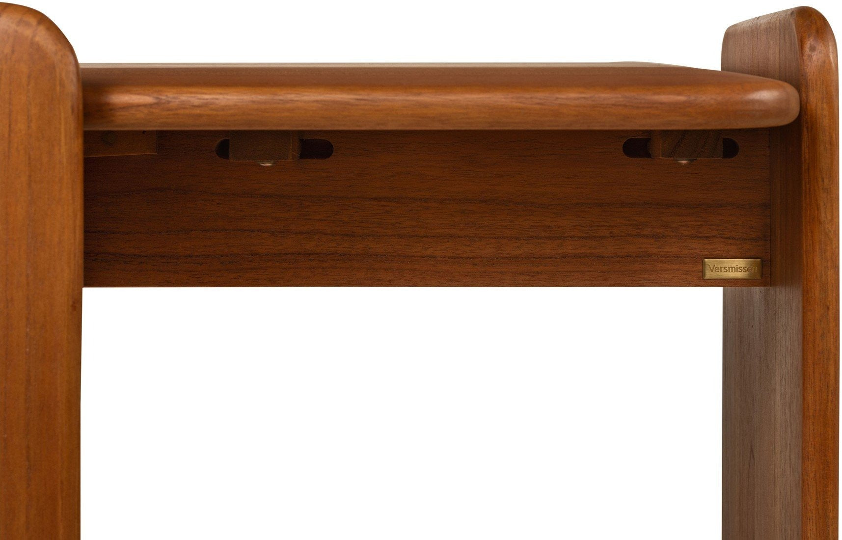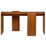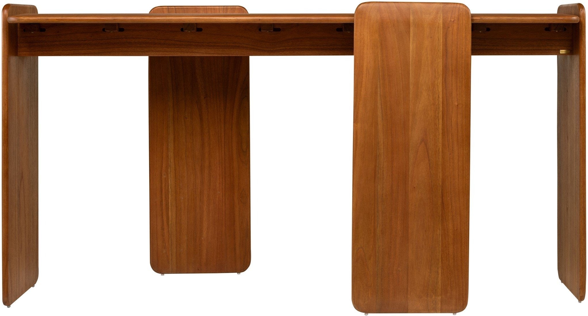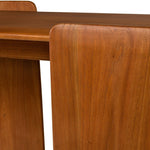 Crafted from warm mindi wood in a rich amber finish, it features a spacious rectangular top ideal for displaying books, vases or treasured photographs. Bold, panel-like legs support the design, adding sculptural depth and a modern edge that complements both minimalist and Scandinavian-inspired interiors. Balancing practical surface space with refined visual appeal, this piece blends form and function effortlessly.
