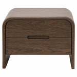 Crafted from durable MDF and finished in a rich brown veneer, this piece combines natural warmth with contemporary elegance. Clean lines and softly rounded corners create a sleek, versatile silhouette that complements both modern and classic interiors. Two spacious drawers with integrated handles offer practical storage while maintaining a minimalist look.
