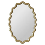 Framed in a glossy champagne gold finish, its wavy, scalloped silhouette adds a touch of whimsy and charm to any interior. This eye-catching design balances bold form with a refined colour palette, making it a standout feature in bedrooms, dressing rooms, or hallways. The shimmering frame reflects light beautifully, enhancing the mirror’s presence while adding a luxe touch.