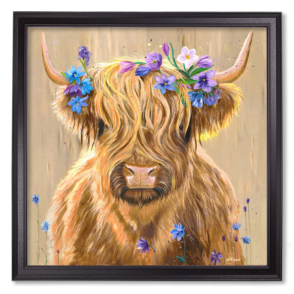 Highland Cow Print 'Flower Girl' by Amy Ansell - Black Square Frame