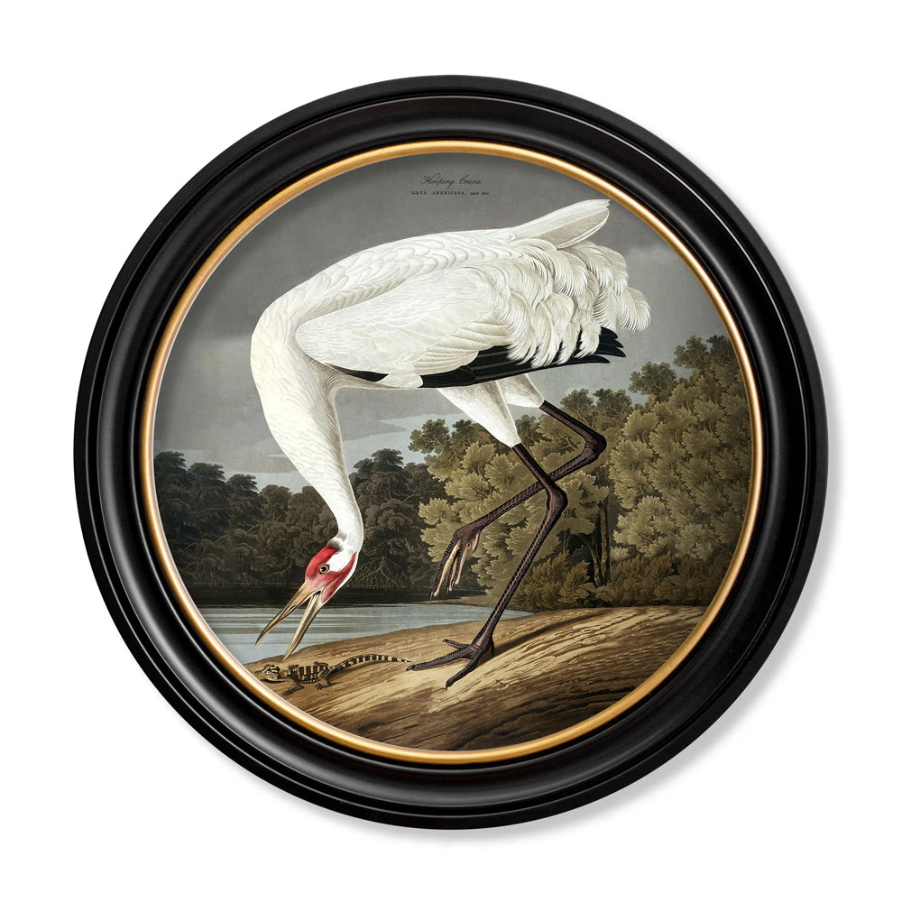 Hooping Crane by John James Audubon – Oxford Round Framed Print