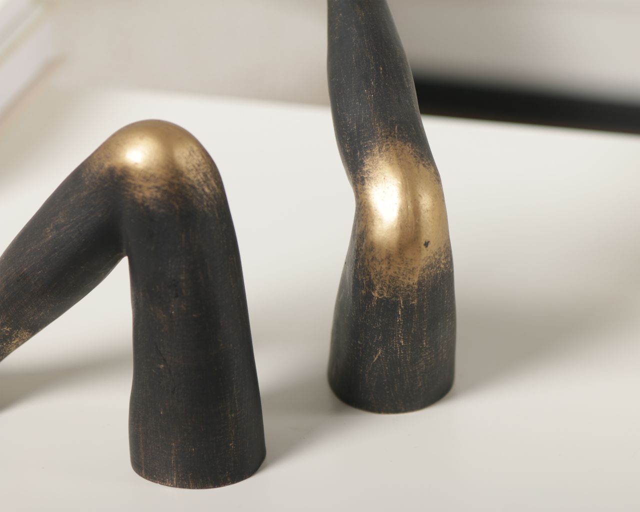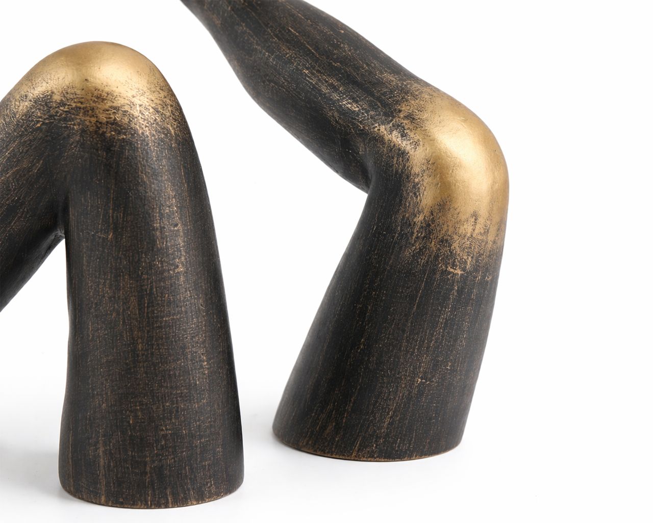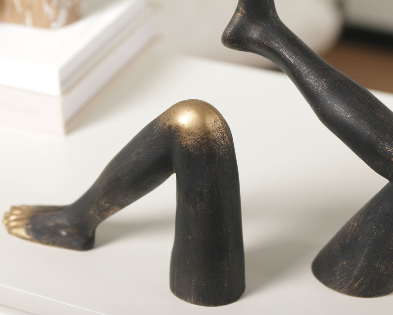 Channelling the essence of modern abstract art, it fuses figurative form with playful fragmentation for a bold, expressive aesthetic. Crafted from alloy with dark bronze and antique gold finishes, it carries a subtly aged look that adds depth and character. Its fluid silhouette and rich texture make it a striking sculptural accent.
