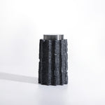 Crafted from textured black resin, this jar showcases a series of alternating grooves and ridges, creating a striking aesthetic reminiscent of otherworldly terrains. The jar's bold persona is further elevated by a contrasting lid fashioned from gleaming stainless steel. Serving as a stylish storage solution for wrapped sweets, miscellaneous items, or simply as decoration, it's a versatile piece.