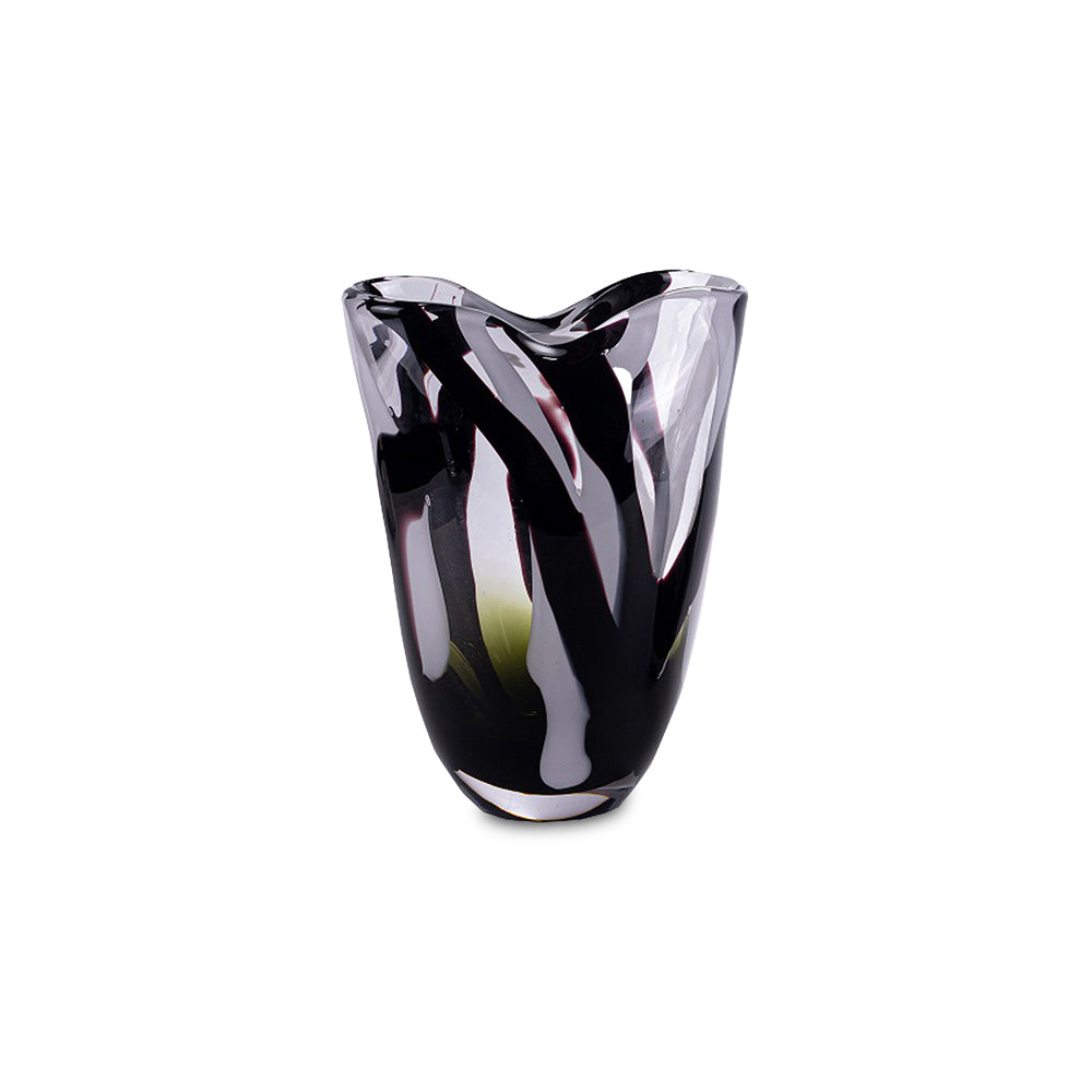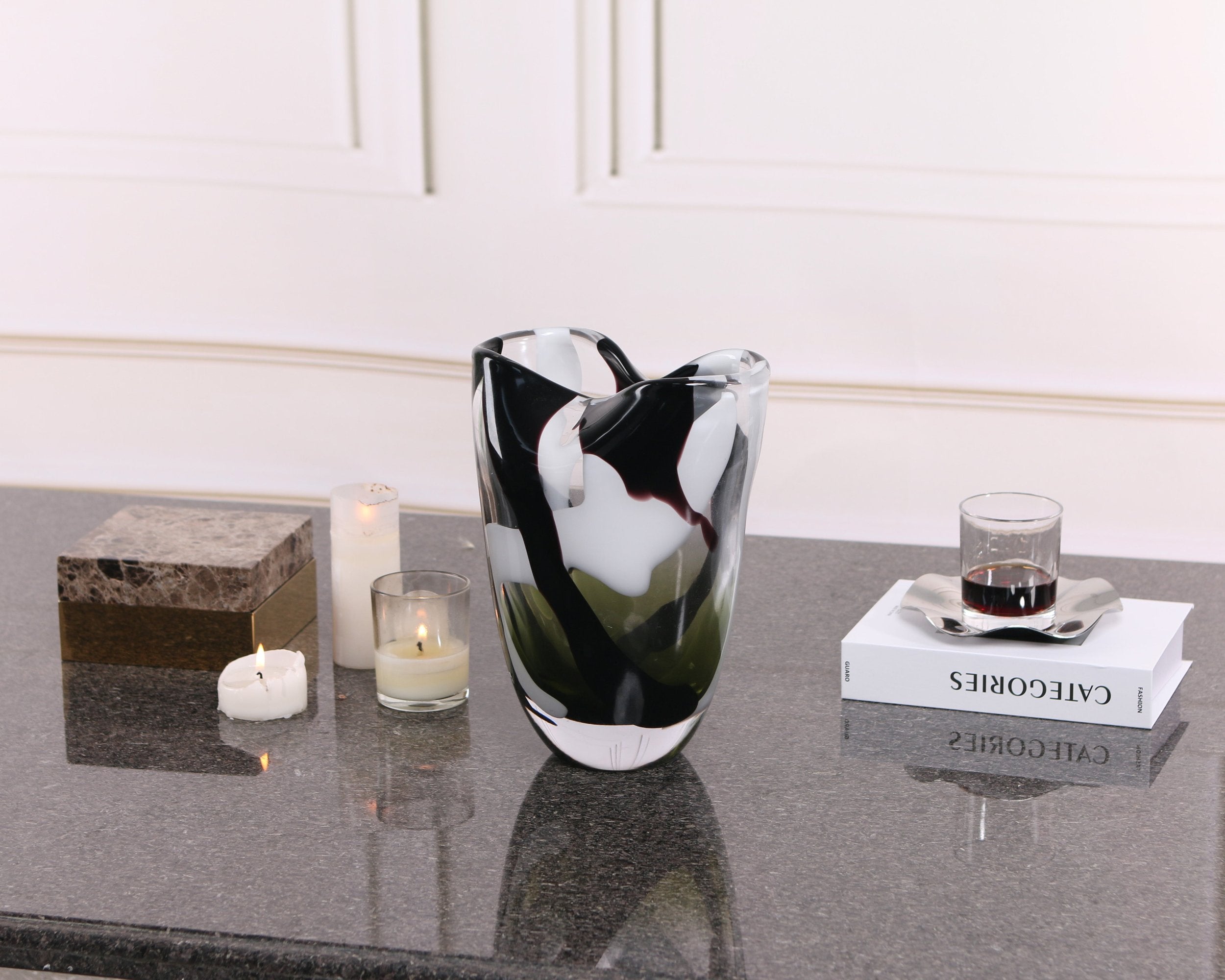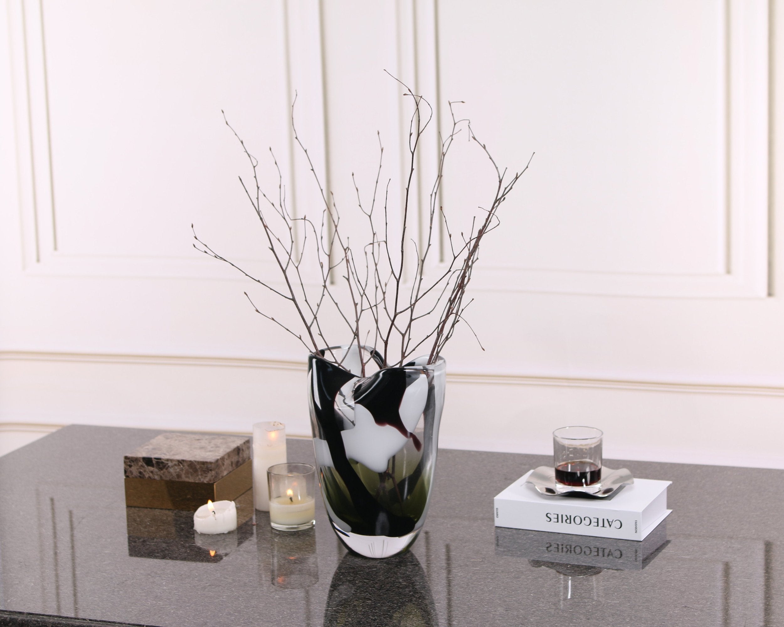 Exuding sophistication with its exquisite shades of black and grey, this beautifully crafted glass vase boasts a sinuous silhouette reminiscent of a blooming flower, adding an organic touch to any interior. Perfect for showcasing fresh flowers or standing alone as a statement piece, the Natasha Vase seamlessly enhances both contemporary and classic spaces.
