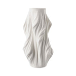 3D printed from white ceramic, this vase showcases intricate curves and ripples to mimic the graceful movement of waves whilst its textured finish enhances the design, offering depth and perspective that captivates the eye. The Waven Vase is versatile in its elegance, whether paired with understated buds or a vibrant bouquet, it adds unparalleled sophistication to any space.