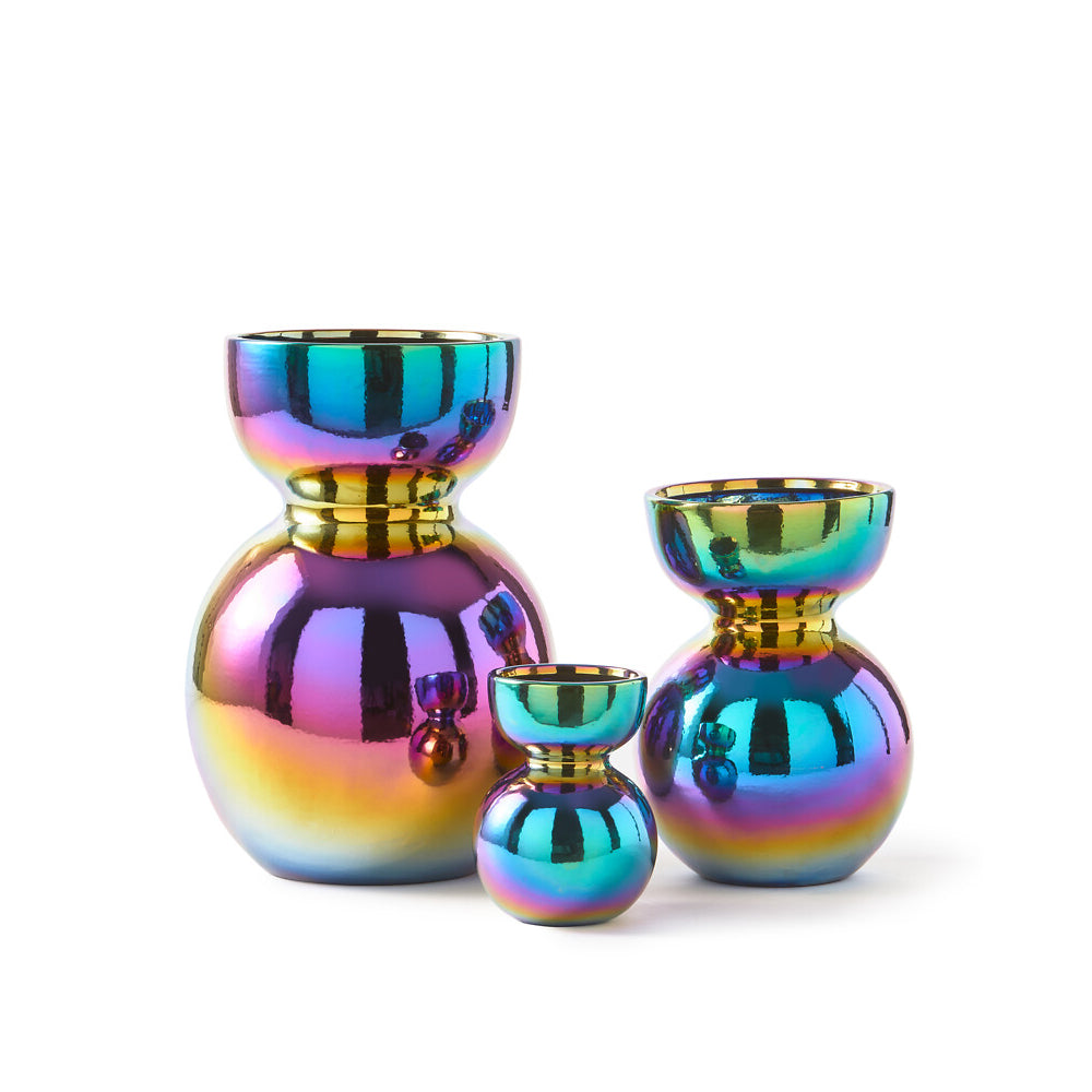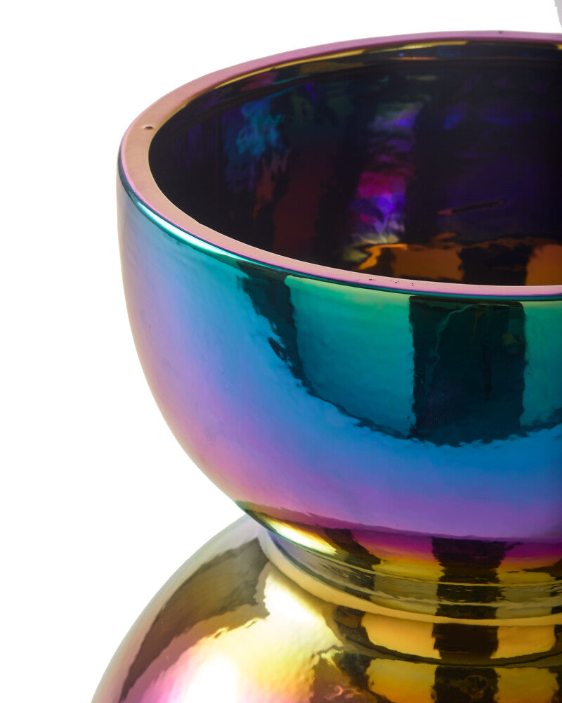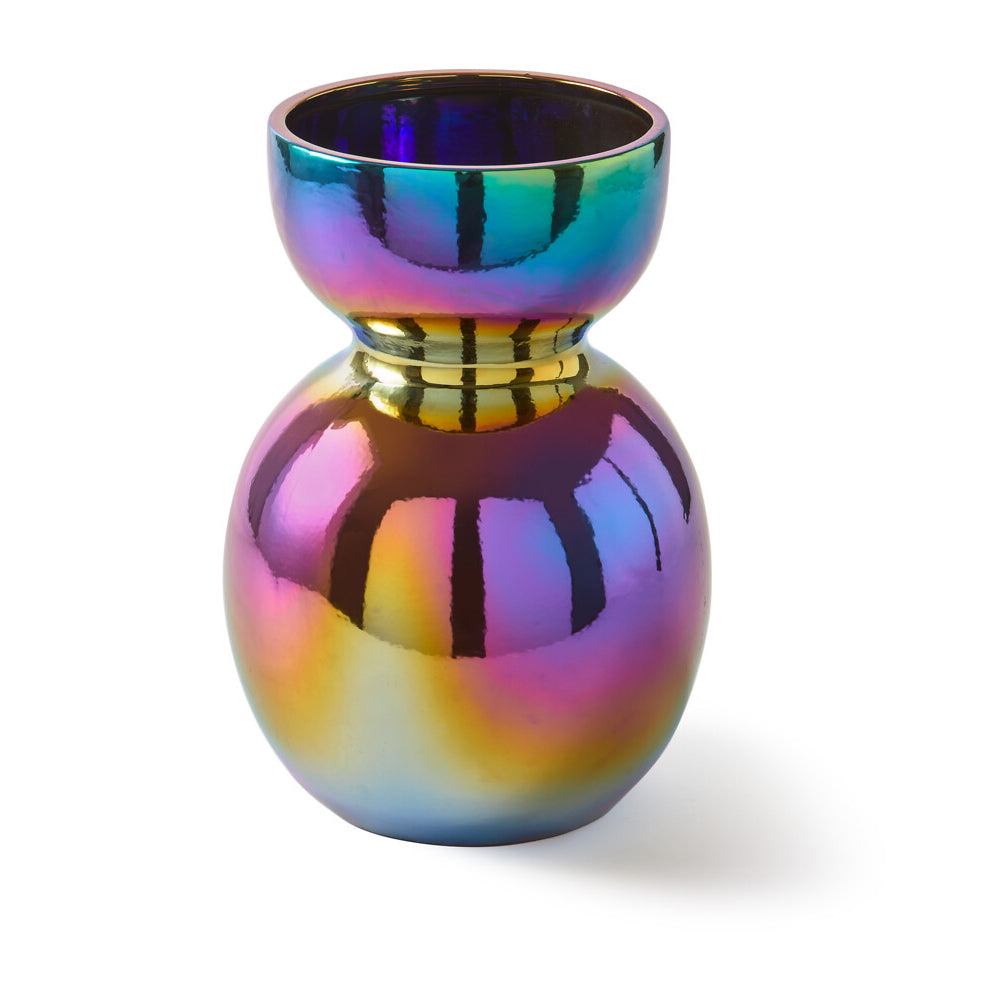 With a smooth, sweeping silhouette and an elegant finish, the Boolb Vase from Pols Potten creates a striking vision in your room of choice. A modern take on the double gourd vase, it has been crafted using traditional oriental techniques and boasts a wide neck and body that allow for larger floral arrangements. Presented in beautiful multi-colour, it features a lovely glaze that makes it entirely unique with an almost oily aesthetic. The Boolb Vase is available in a range of sizes and colours – why not mix and match for an especially impressive result?