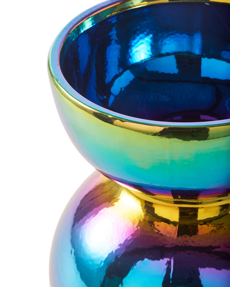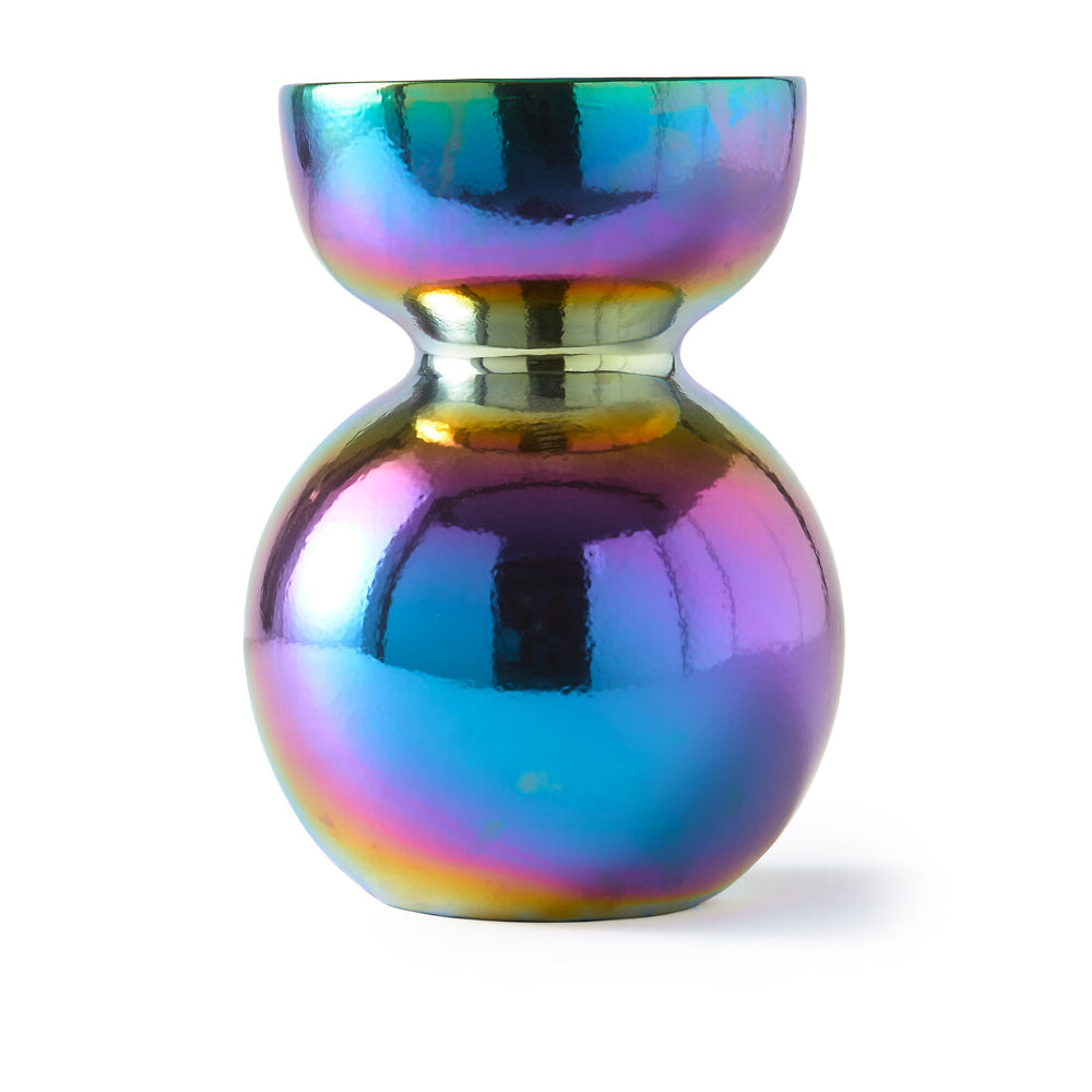 With a smooth, sweeping silhouette and an elegant finish, the Boolb Vase from Pols Potten creates a striking vision in your room of choice. A modern take on the double gourd vase, it has been crafted using traditional oriental techniques and boasts a wide neck and body that allow for larger floral arrangements. Presented in beautiful multi-colour, it features a lovely glaze that makes it entirely unique with an almost oily aesthetic. The Boolb Vase is available in a range of sizes and colours – why not mix and match for an especially impressive result?