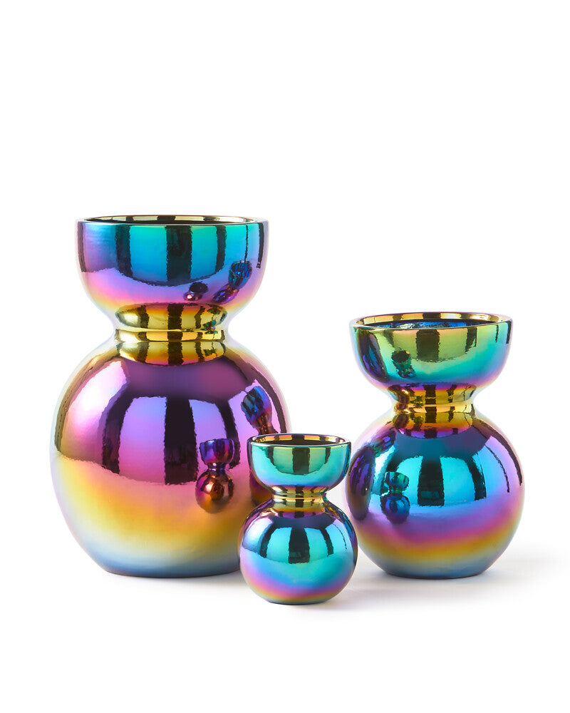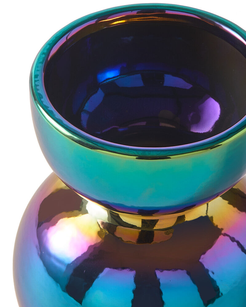 With a smooth, sweeping silhouette and an elegant finish, the Boolb Vase from Pols Potten creates a striking vision in your room of choice. A modern take on the double gourd vase, it has been crafted using traditional oriental techniques and boasts a wide neck and body that allow for larger floral arrangements. Presented in beautiful multi-colour, it features a lovely glaze that makes it entirely unique with an almost oily aesthetic. The Boolb Vase is available in a range of sizes and colours – why not mix and match for an especially impressive result?