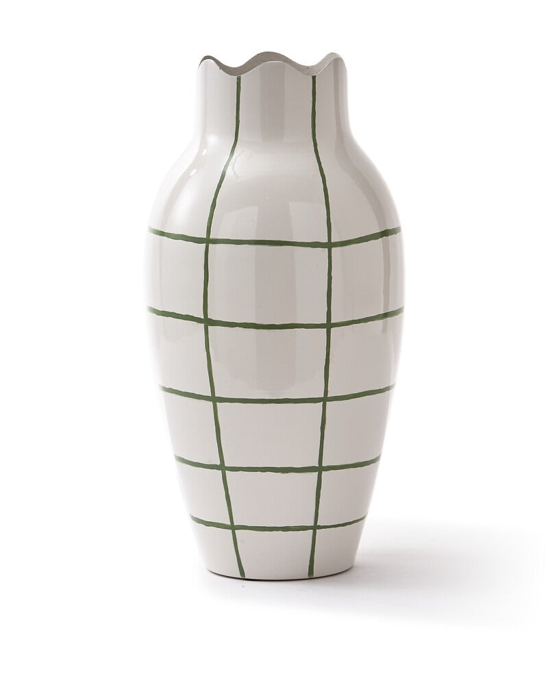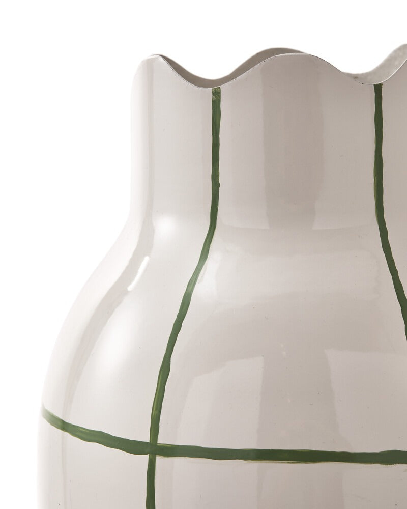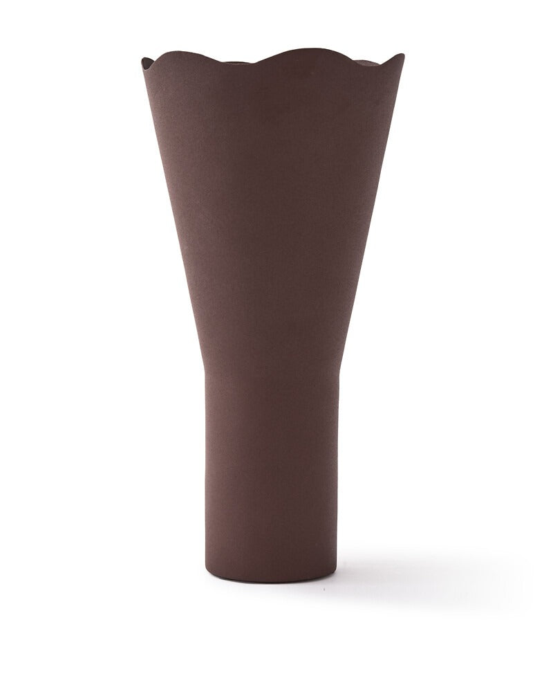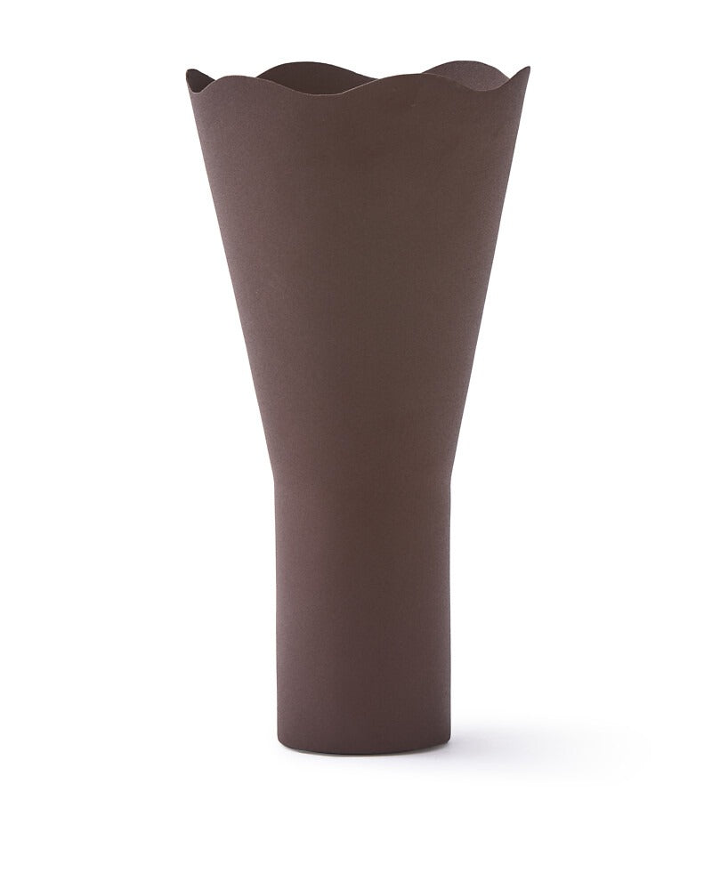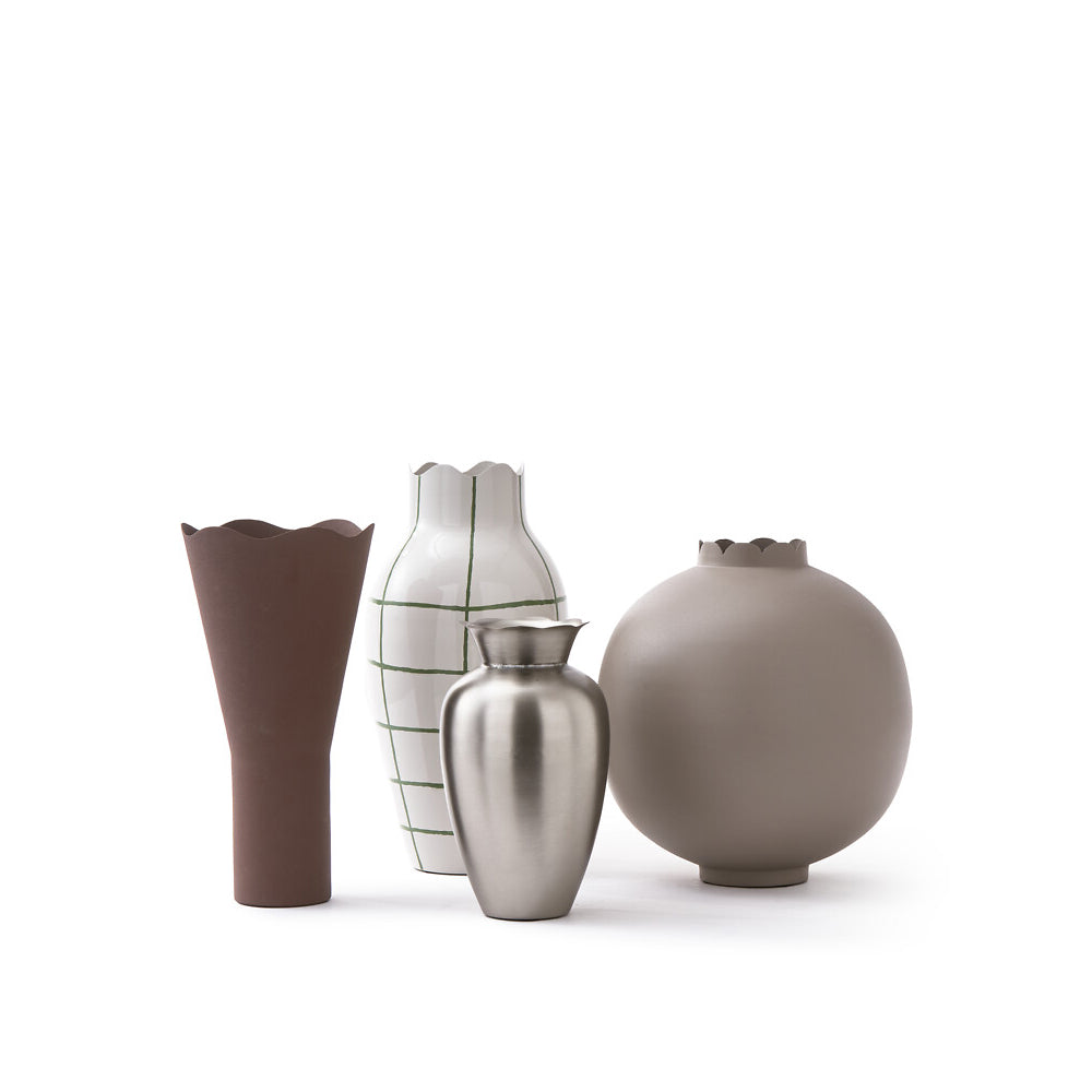 This set of four vases, each unique in height, shape, and texture, unifies under a shared theme of wavy tops, inspired by the whimsical charm of Riviera parasols. These vases, with their varied colours and finishes, infuse a distinctive character into your decor. They can be grouped together for a bold, eclectic statement or displayed individually, adapting to a range of styles and settings.