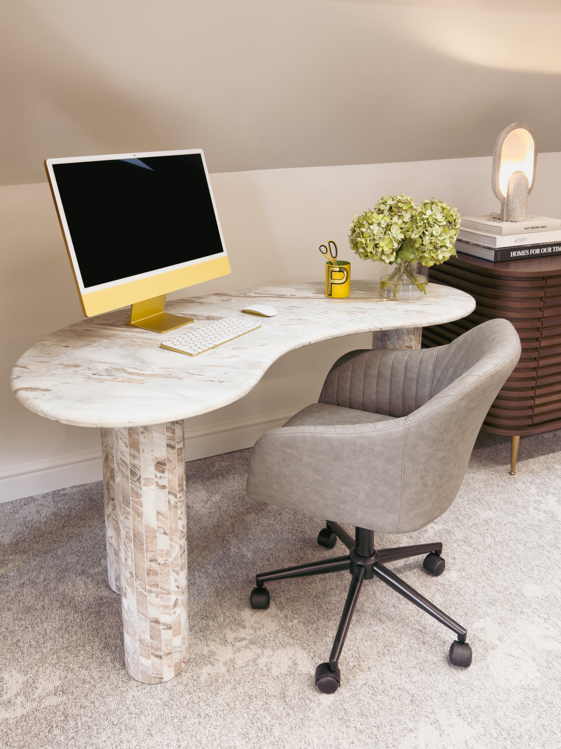 Blending smooth curves with bold, unapologetic style, the Petra Marble Desk is an effortless way to elevate your office or creative workspace.
