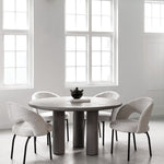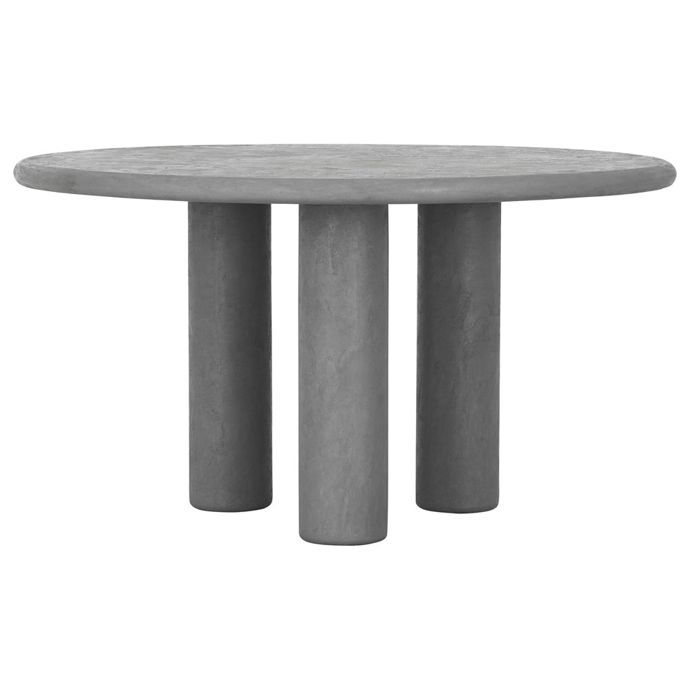 Finished in a soft, dusk colour, this mortex table brings a smooth, plaster like aesthetic to your space. Supported by a trio of cylindrical legs, the rounded top encourages dinnertime conversation and creates a calm, welcoming feel. A stunning addition to contemporary or industrial interiors, it is a versatile piece that pairs beautifully with a wide range of dining chairs.