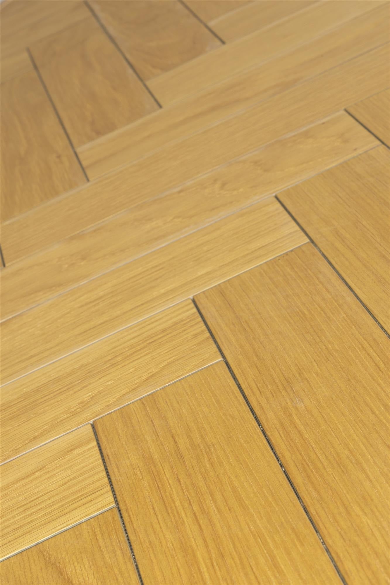 Its wooden top, complete with a light oak finish, features a striking herringbone pattern that highlights the natural grain and adds a touch of craftsmanship. The geometric steel base introduces an industrial edge, balancing the warmth of the wood with contemporary strength and stability. Designed with clean lines and subtle detail, it offers generous space for dining while maintaining an airy, refined aesthetic.