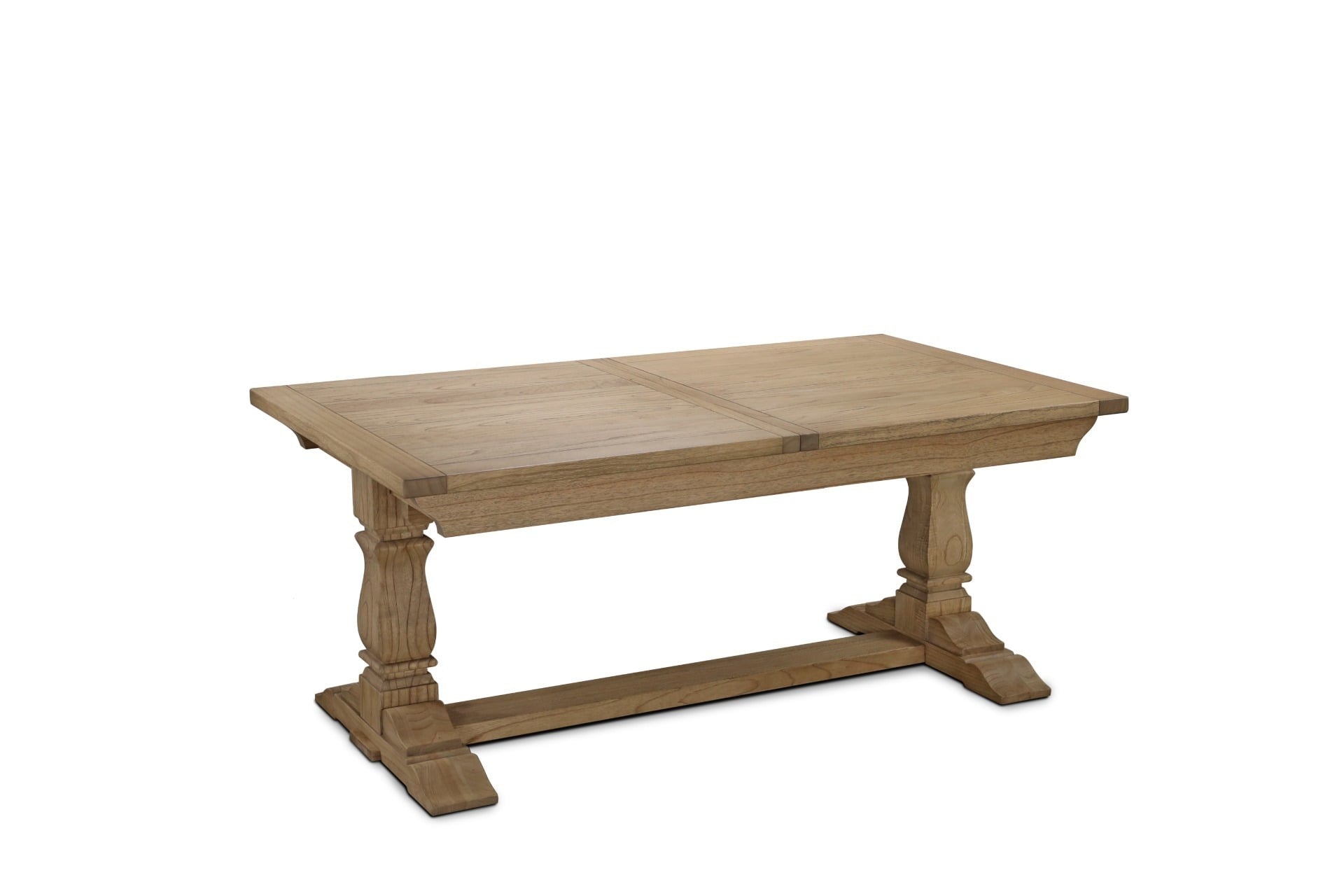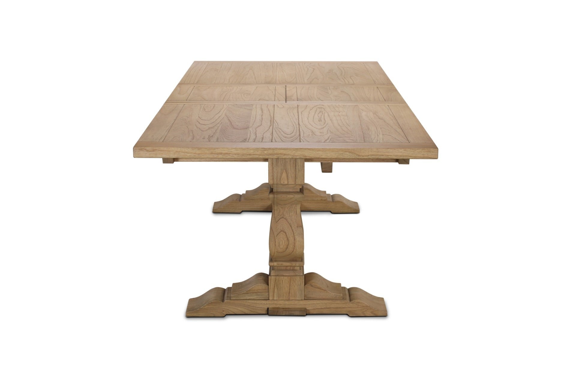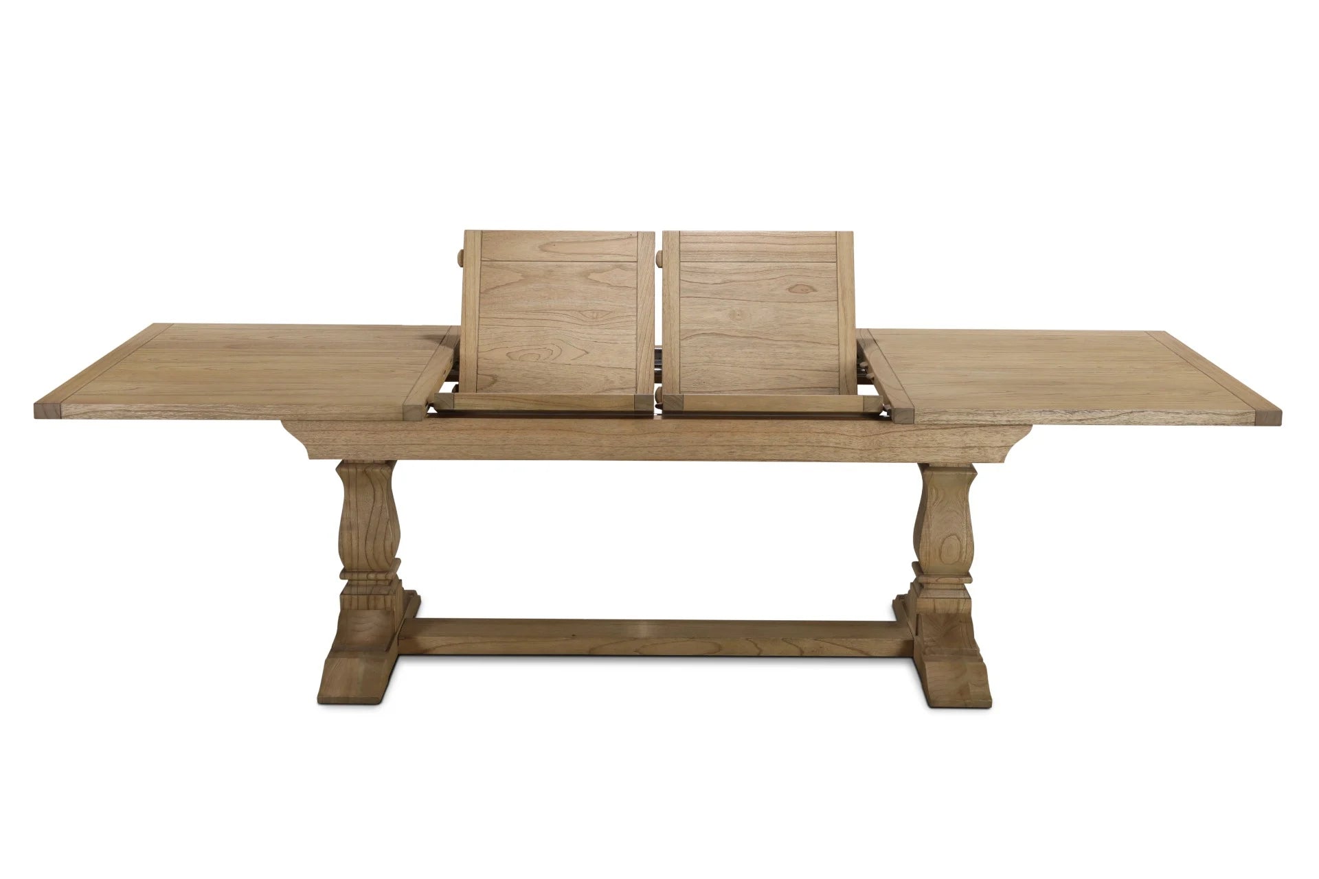Expertly crafted from solid mindi wood, it features a warm, natural finish and elegant pedestal legs that lend classic character. Its clever extendable design allows the table to expand from 180 cm to 280 cm using one or two integrated leaves, offering flexible seating for up to ten guests.