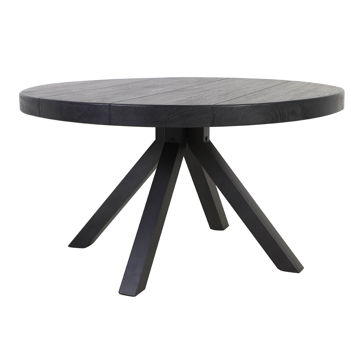 The bold strength of the Muden Dining Table is the beginning of a new style in dining. A centrepiece with stand-out features. The solid wood has a Matte black finish that offers timeless design. Pair this with any contemporary or traditional style for your dining room. Oriental, chic or monochrome spaces will all benefit from this table. The round table top and chunky stable legs offers everything you need. Bring a new vibe to your space and pair this with your choice of chairs perfectly.