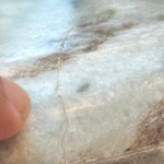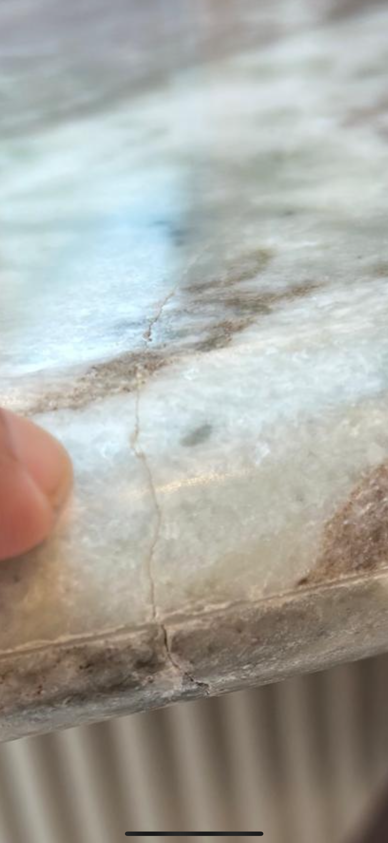 • We have one piece with a hairline crack on the tabletop, which is a natural seam in the stone. This does not affect the structural integrity of the table - see images. A video of the issue is available here.