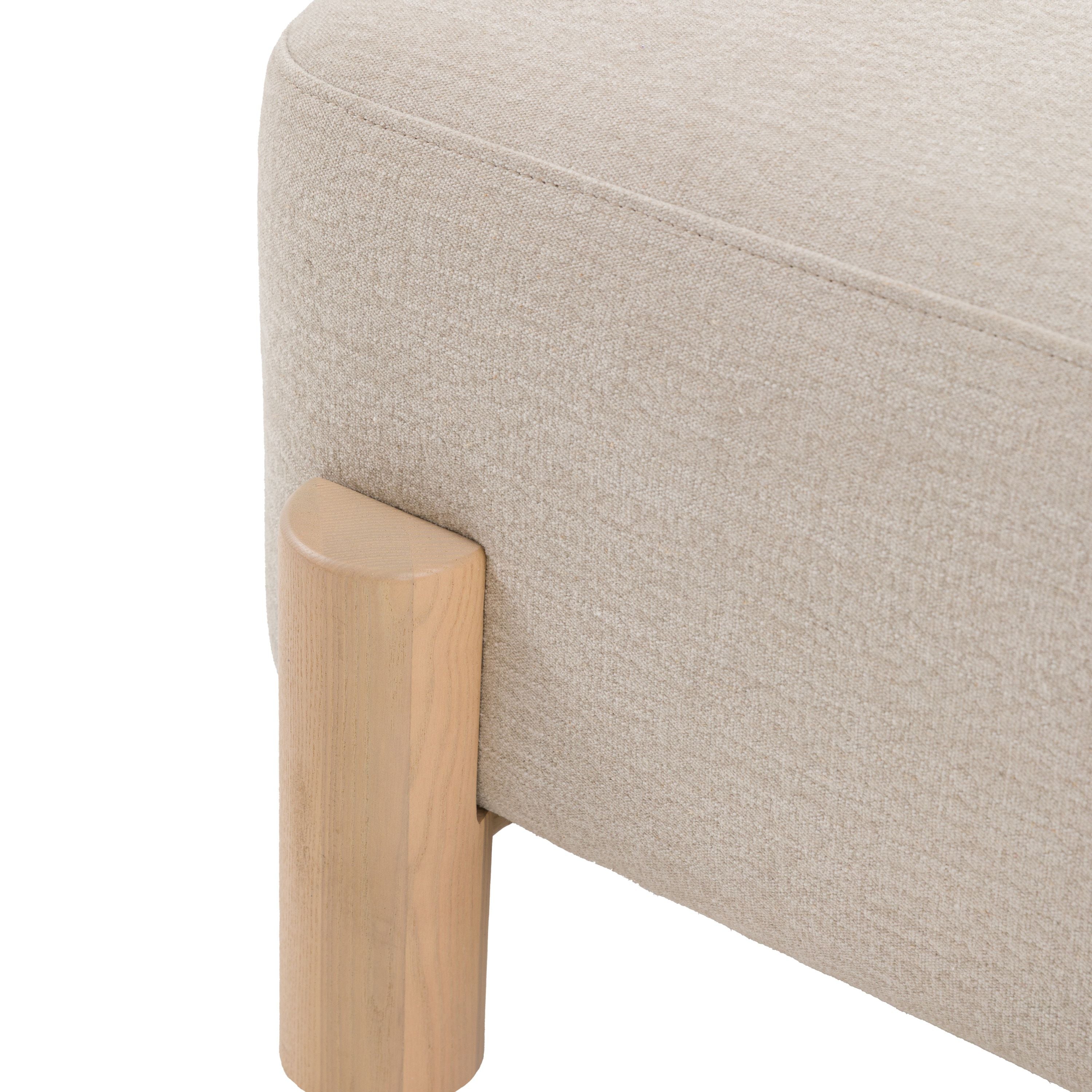 Upholstered in a light neutral fabric, it blends effortlessly with modern, Scandinavian and relaxed interiors, and pairs beautifully with the matching sofa and armchair for a cohesive look. Sturdy wooden legs in a light, natural finish add subtle organic warmth, while the generously padded seat works brilliantly as a footrest, occasional perch, or a soft surface for a tray.