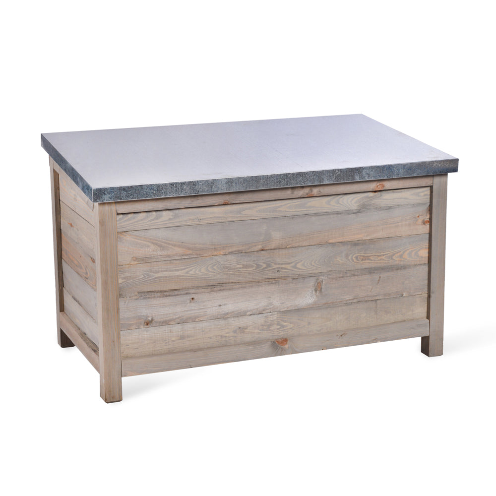 Crafted from quality spruce wood with an elegant grey wash finish, this robust storage solution exudes rustic charm. It features a slanted hinged lid, made from durable galvanised sheet metal, that ensures long-lasting protection against the elements. With ample space inside, it is ideal for storing garden accessories, outdoor toys, and footwear.
