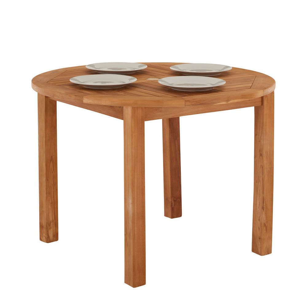 Crafted from high-quality teak wood, this table combines natural beauty with exceptional durability. Its sleek, round design is perfect for intimate gatherings, and the integrated parasol hole ensures you can effortlessly add shade on sunny days, enhancing your dining comfort.