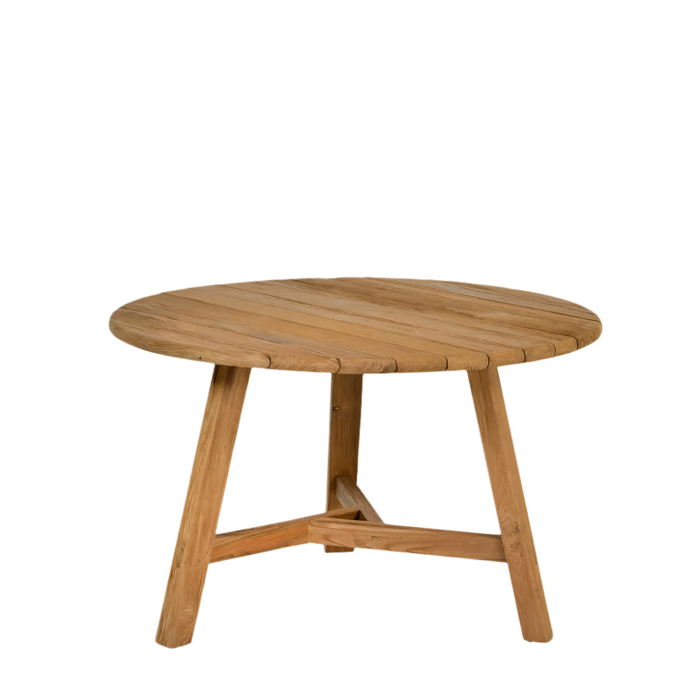 Crafted from reclaimed teak wood, its natural finish highlights the unique grains and textures, bringing warmth and character to your home. The sturdy, round design creates an inviting atmosphere, ideal for cosy family meals or al fresco dining.