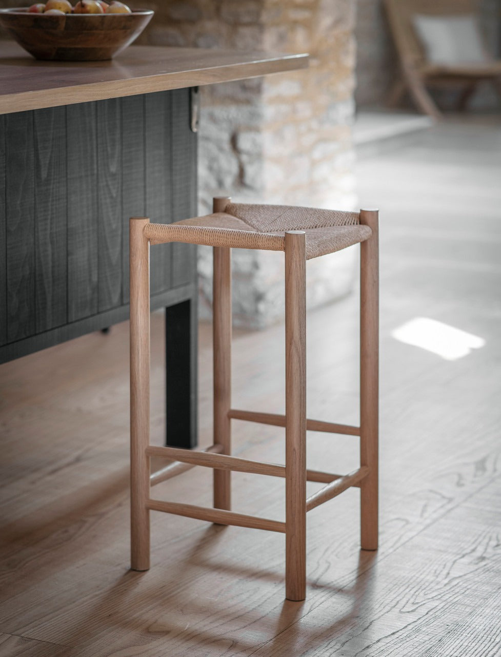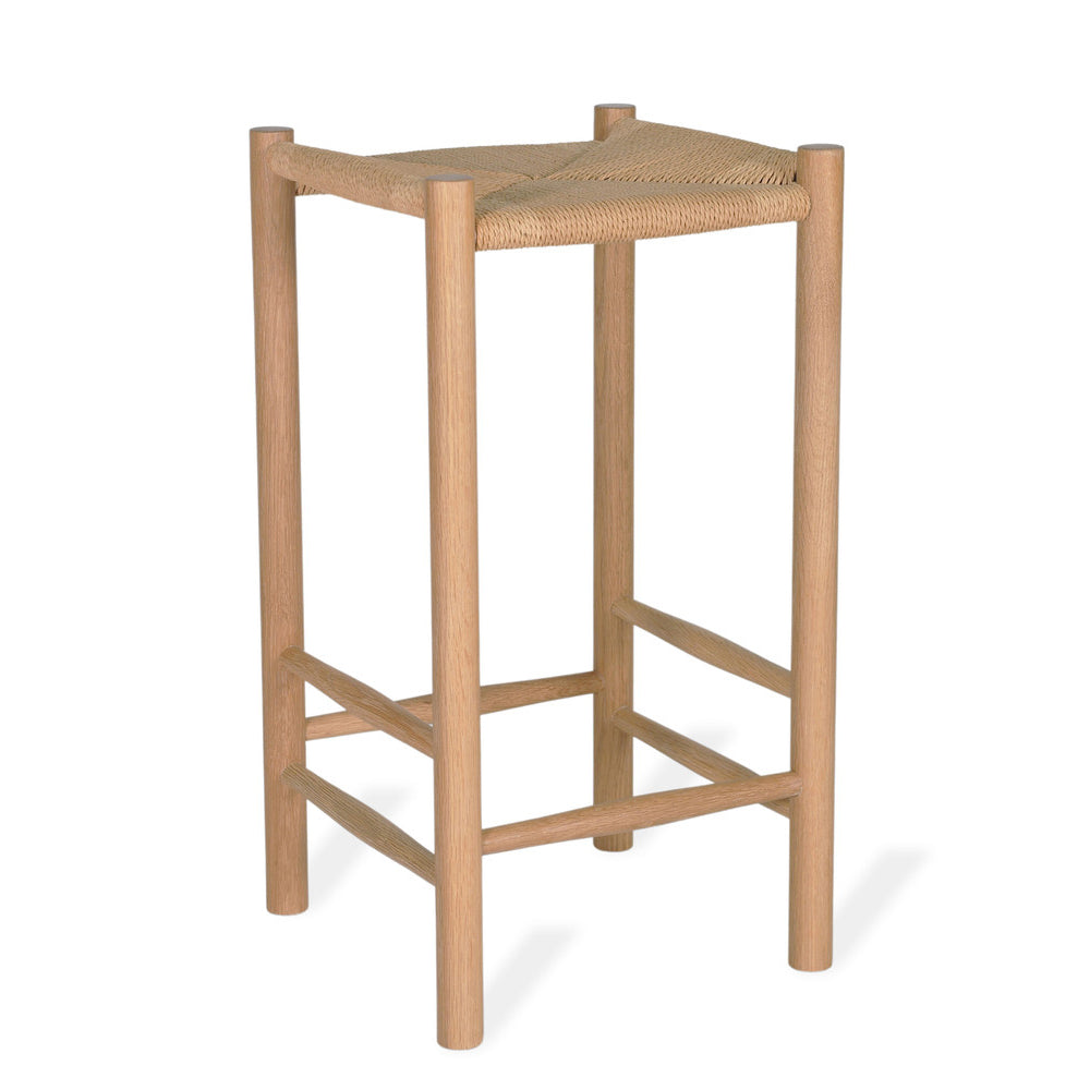 Crafted with a natural oak frame, it features a natural papercord weave seat that adds texture and warmth. Designed for both durability and style, this stool blends minimalist lines with traditional weaving techniques. The sturdy legs and clean design provide stable, comfortable seating, ideal for kitchen islands, bars, or casual dining areas.
