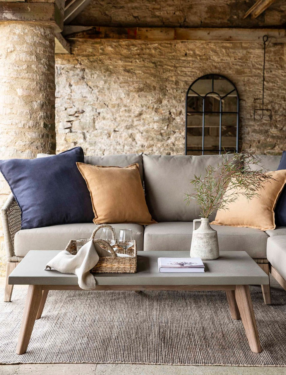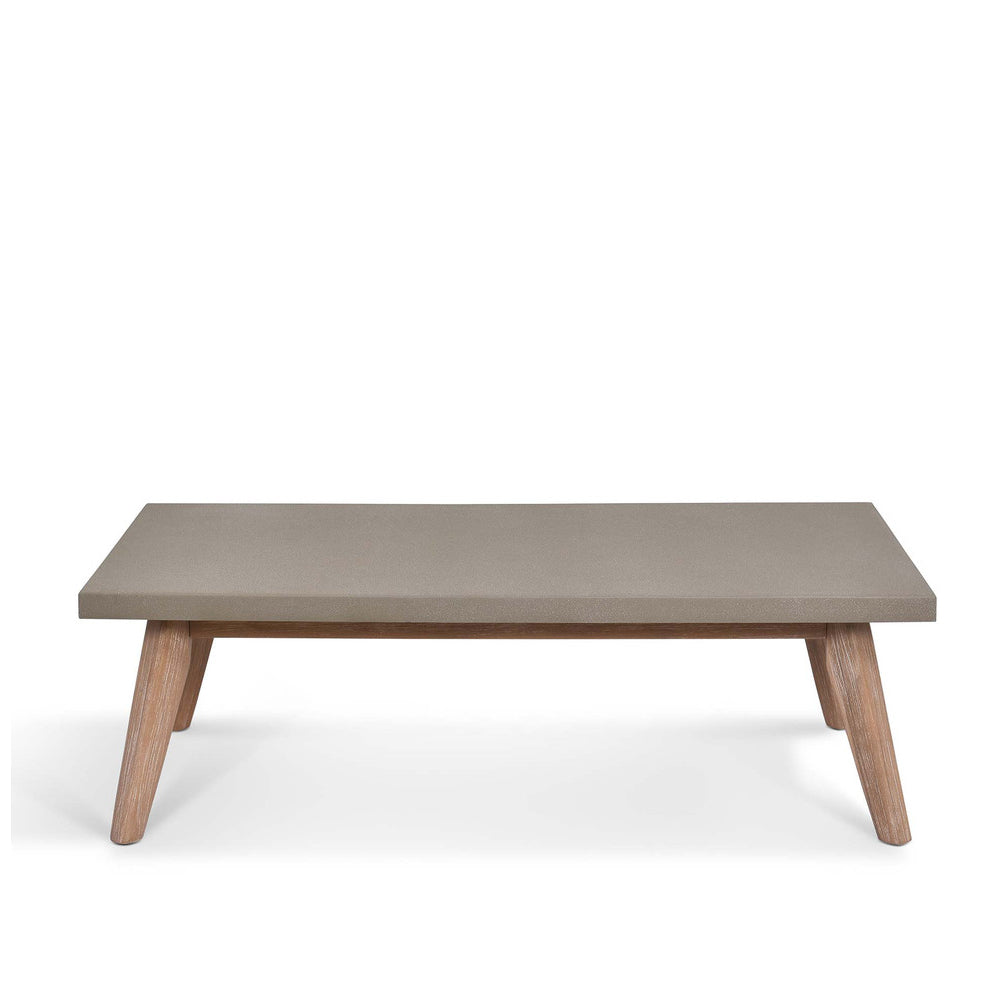 Crafted with sturdy acacia wood legs and frame, its rectangular top in grey polystone perfectly complements the natural wood, exuding contemporary elegance. Effortlessly blending laidback style with summer sophistication, the Lynton Coffee Table promises to impress guests with its chic design.