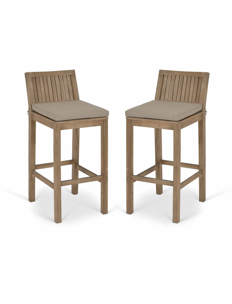 Standing out with its acacia construction, it features a sleek, slatted seat and backrest for both style and support. Finished in a chic whitewash, it enhances the natural elegance of the wood, adding a contemporary yet rustic flair to any setting. Designed to complement the matching Porthallow Bar Tables, this stool offers a perfect spot for enjoying morning coffees or evening drinks.