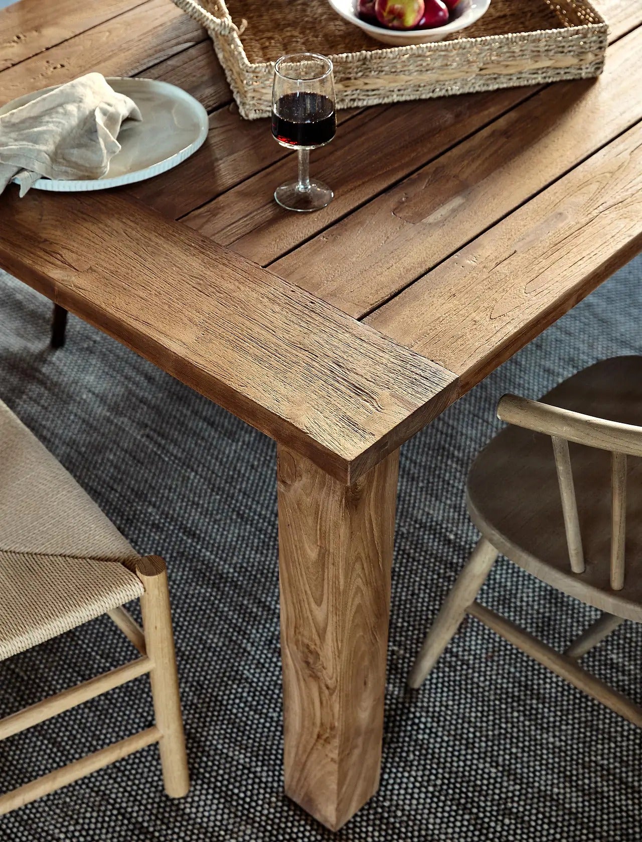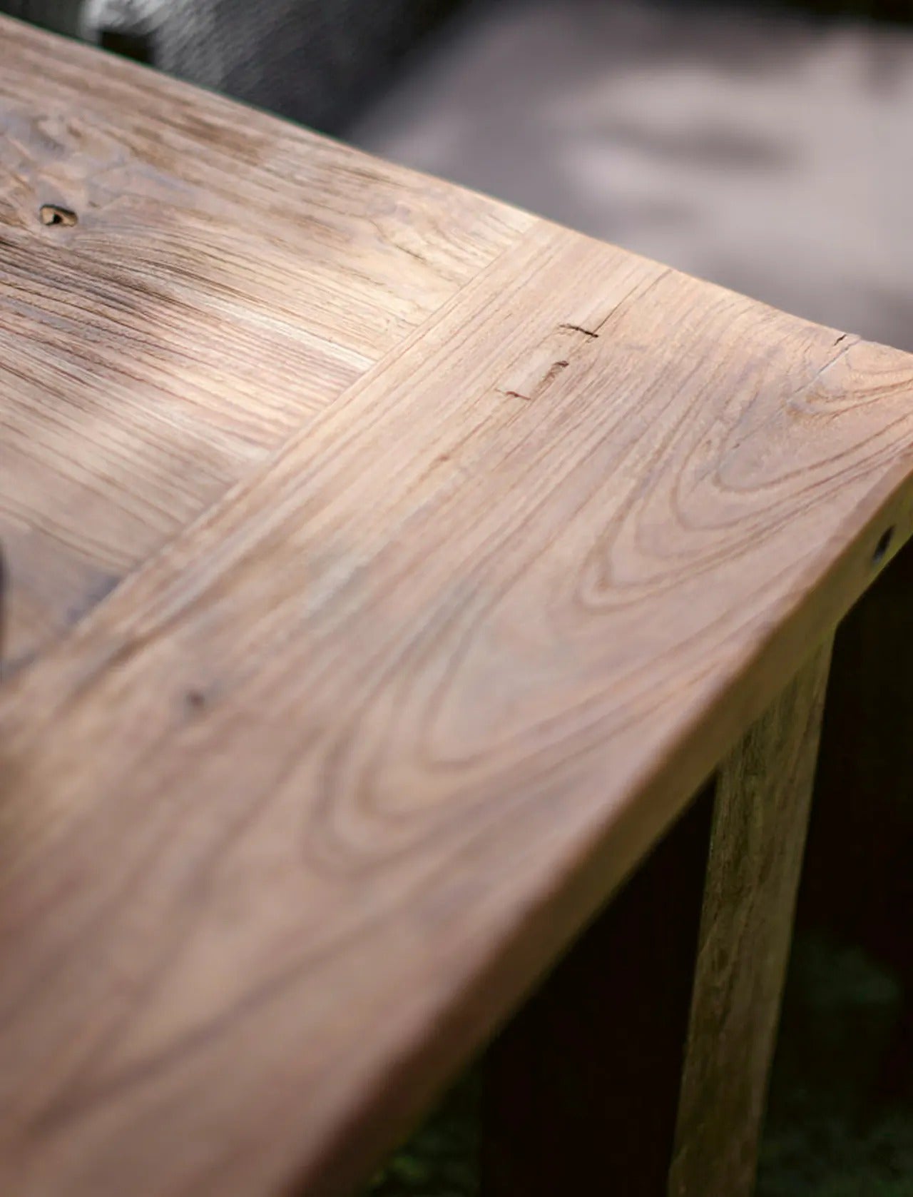 Crafted from hand-selected reclaimed teak wood, its natural grain and subtle weathered finish add an authentic touch to your décor. Designed to comfortably seat up to 8 people, this large table is perfect for family gatherings or entertaining guests. Its versatile design allows it to transition seamlessly between indoor and outdoor use, making it a stylish addition to patios, dining rooms, or garden settings.