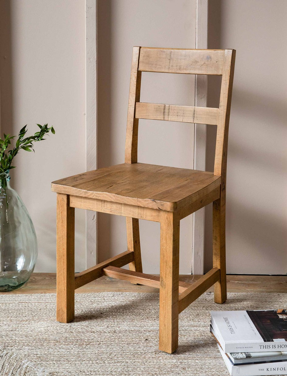 Showcasing sleek lines and a pared-back design well suited to minimalist or farmhouse-style spaces, this classy chair is made from reclaimed pine wood with a warm natural finish. Ideal for grouping around your dining table or providing additional seating in your living room, this piece combine simplicity with elegance.