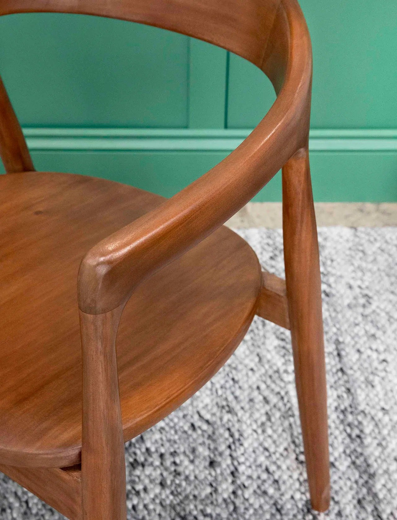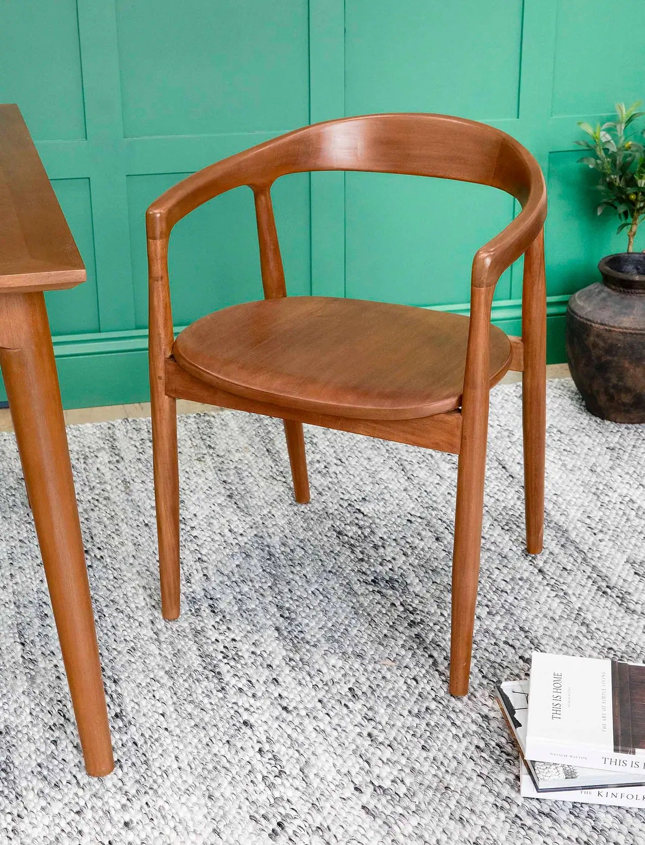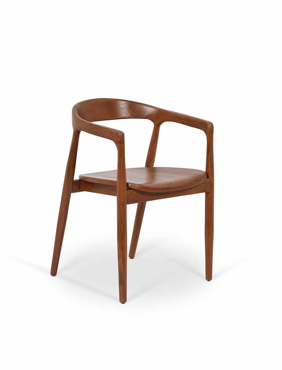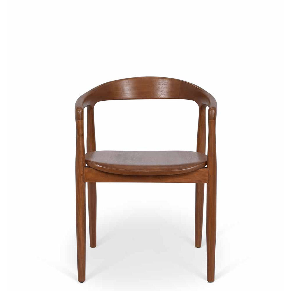 Crafted from solid mahogany with a natural finish, this chair highlights the wood's rich tones and beautiful grain, bringing warmth and elegance to any setting. Its gently curved backrest and subtly tapered legs create a timeless silhouette that combines comfort with style.