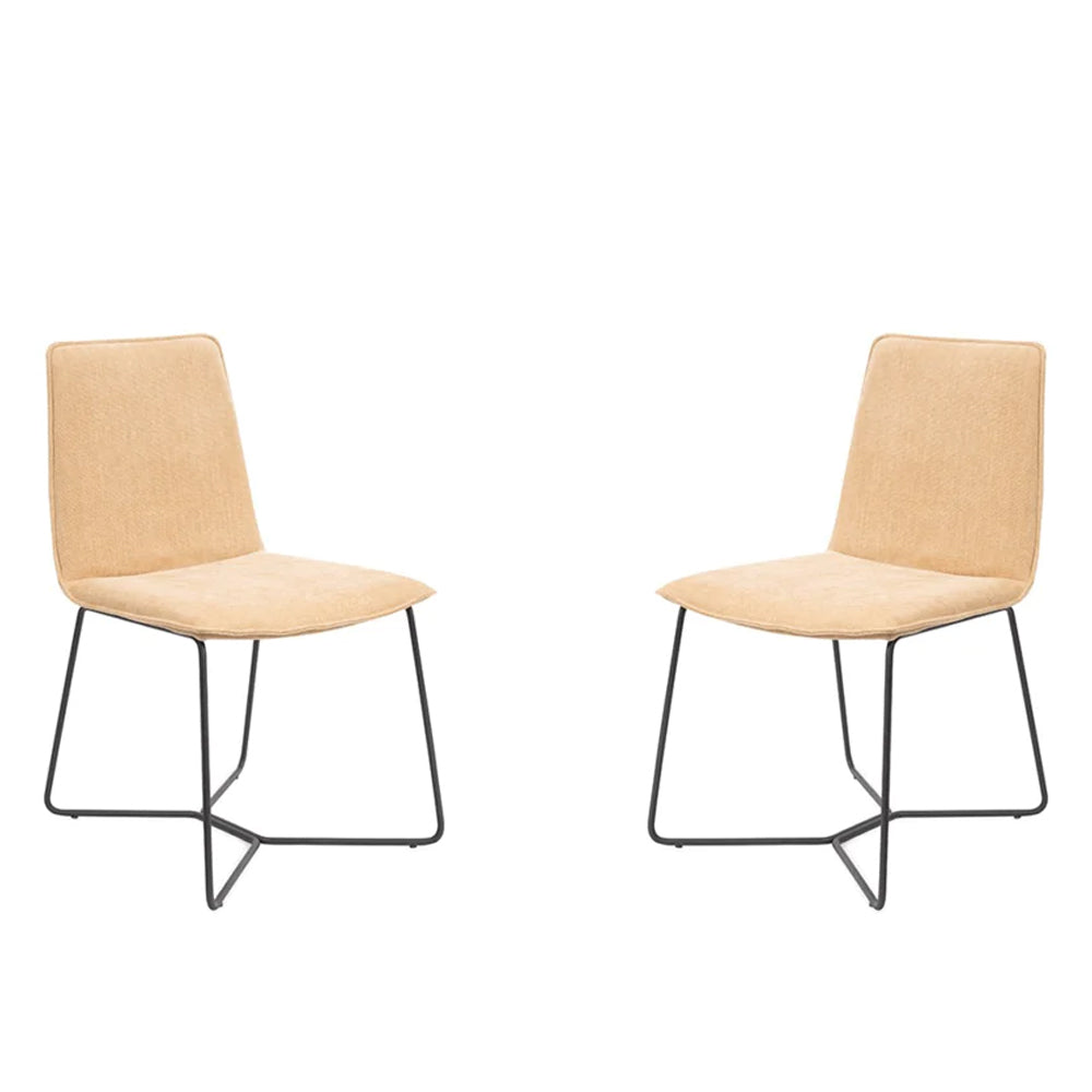 Adorned in the exquisite Warwick Copeland Honey fabric, these chairs boast a touch of luxury while ensuring utmost comfort during mealtime gatherings. The sleek metal legs complement the simple design, adding a contemporary edge to its overall aesthetic. Whether your dining area is spacious and modern or cosy and traditional, the Nomina Dining Chair effortlessly adapts to any space.