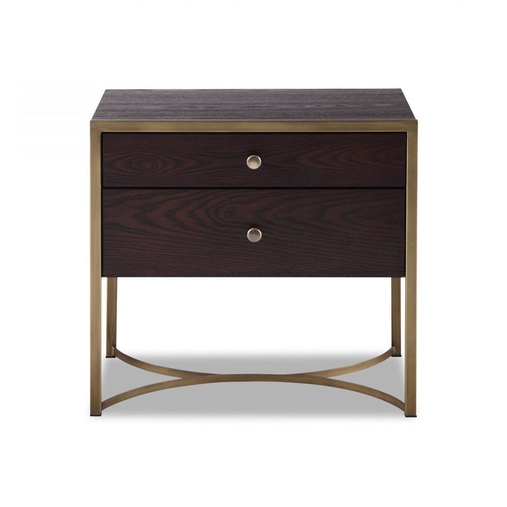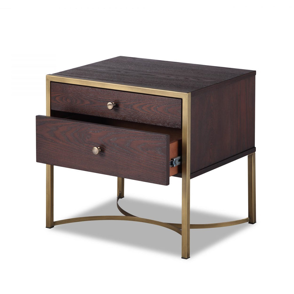 Liang & Eimil Rivoli Bedside Table with Chocolate Brown Ash Veneer and Brass - Excess Stock