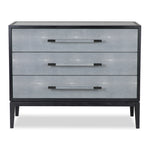A sleek black frame made from ash veneer compartmentalises the faux shagreen to create a distinct but classy look that you are sure to fall in love with. With three ample drawers adorned with matching shagreen long handles, you will have plenty of room for your belongings making this piece is as functional as it is stylish.