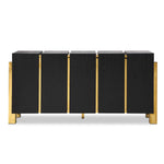 The Liang & Eimil Enigma Sideboard plays with the traditional notions of what furniture should be. It is formed from fabulous black ash veneer panels, which have been handcrafted. They add a drama through their gorgeous colouring, which is easy to see. In five long sections, they are striped with polished brass for effect. The legs add the perfect finishing touch. Open it, to reveal plenty of useable space to keep your room tidy. Place this sideboard in your living area for a show-stopping look. It demands attention for its luxurious beauty. The ultimate in home décor, make it a central part of your interior setting.