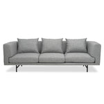 The slick chic of the Emporio grey fabric is the ultimate choice for any living area. The Liang & Eimil Mossi Sofa benefits from this feature and many others besides. This is a large seating space with truly artisan design. Three well-padded seat cushions and matching scatter cushions give an impression of clean lines and order for minimalist rooms. This is a comfortable space to relax and put your feet up. It is highly functional yet attractive, with beauty in abundance. It is thoroughly adaptable and will suit living areas, offices and waiting rooms alike. Finished with black metal legs, this is a sleek option anywhere.