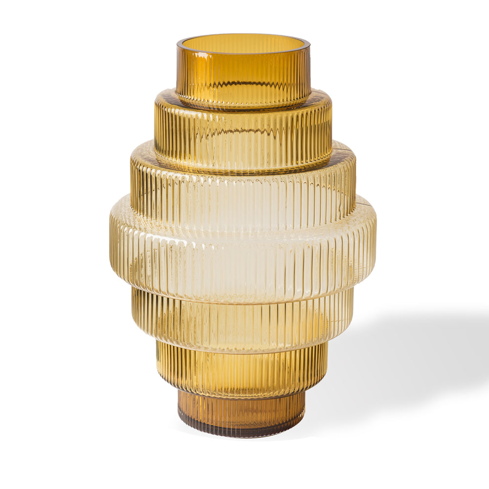 The Pols Potten Steps Vase is a feat of perfect balance and symmetry that will look absolutely stunning in your room of choice. The unique step-like tiered design is created entirely from amber glass skilfully mouth-blown to perfection. This vase would make a great addition to any room, but to get the most out of it, place it near a window. When sunlight hits the fluted glass, the vase will emit a soft, atmospheric glow that will make you the envy of your friends and family.