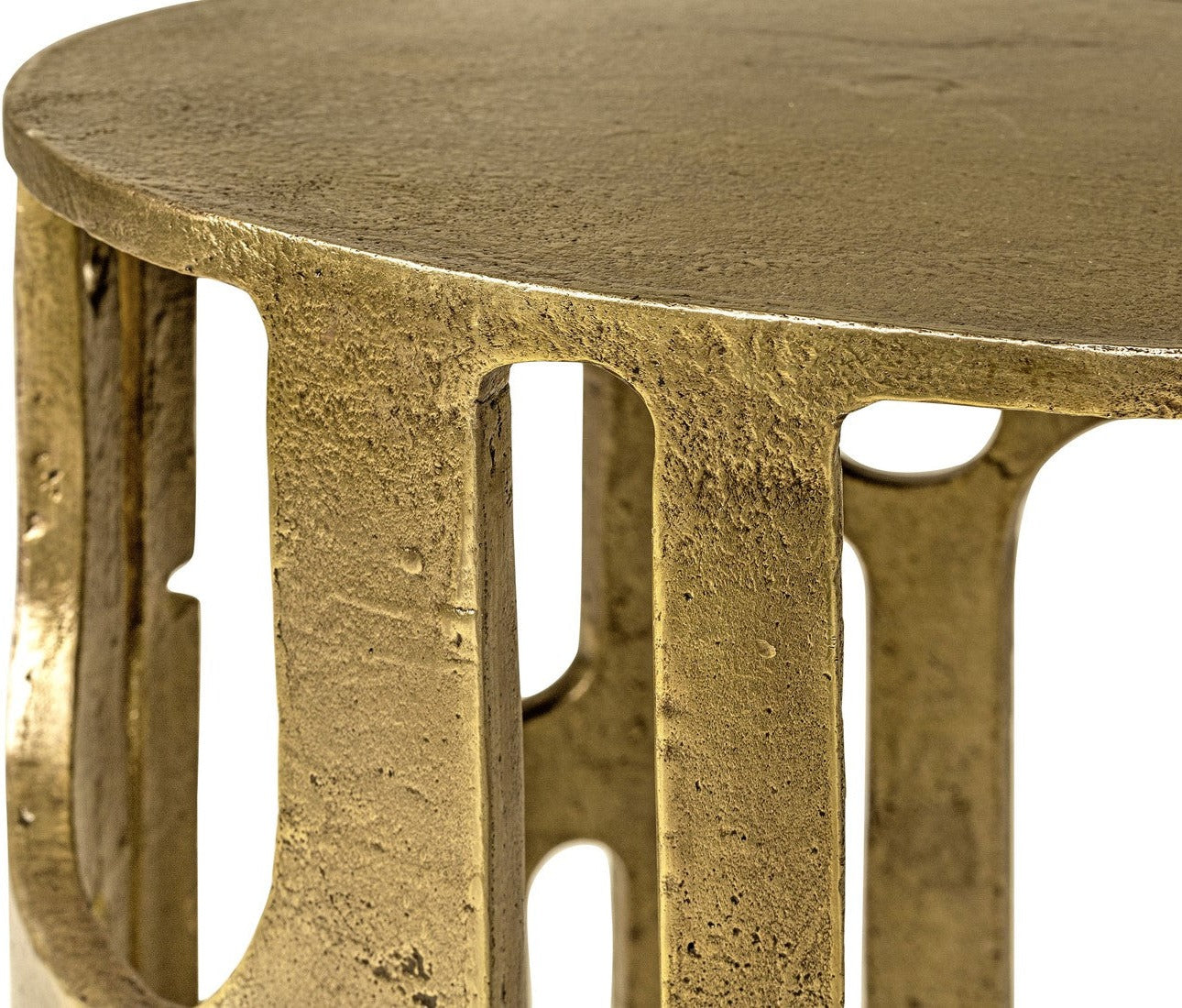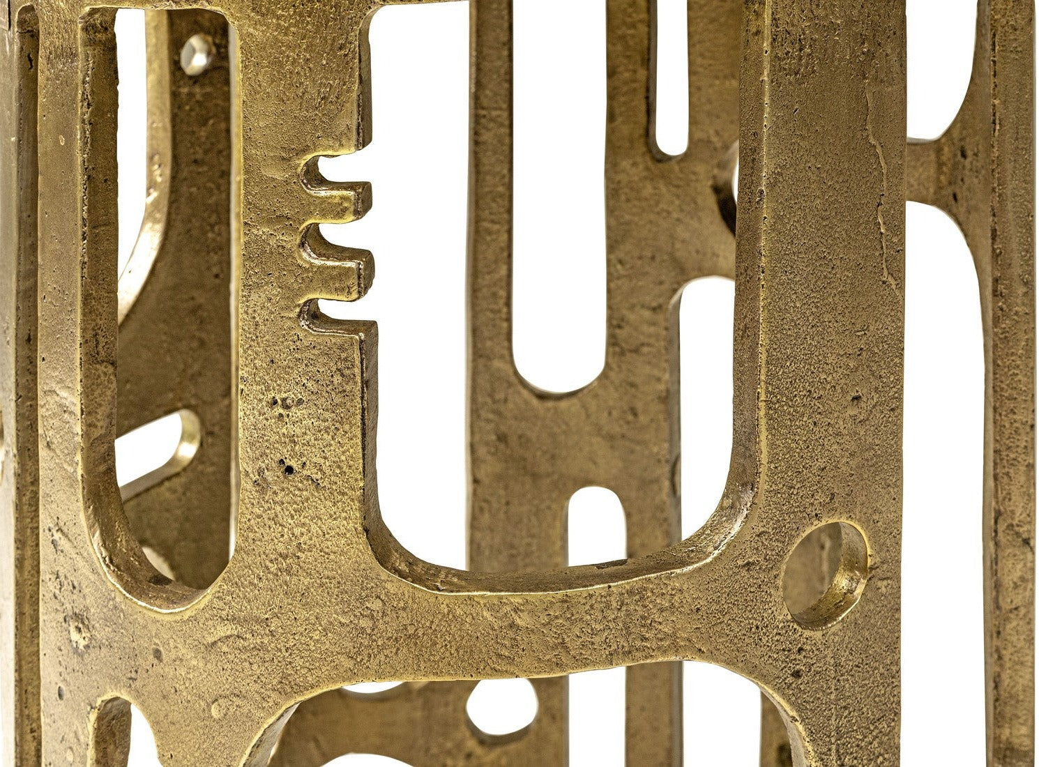 Cast from durable aluminium with a bronze finish, its silhouette mirrors the toughness of repurposed machinery, while geometric cutouts offer a visual feast, reducing its weight for easy manoeuvrability. Its robust yet sleek form ensures it's as much a conversation piece as it is a practical seating solution.