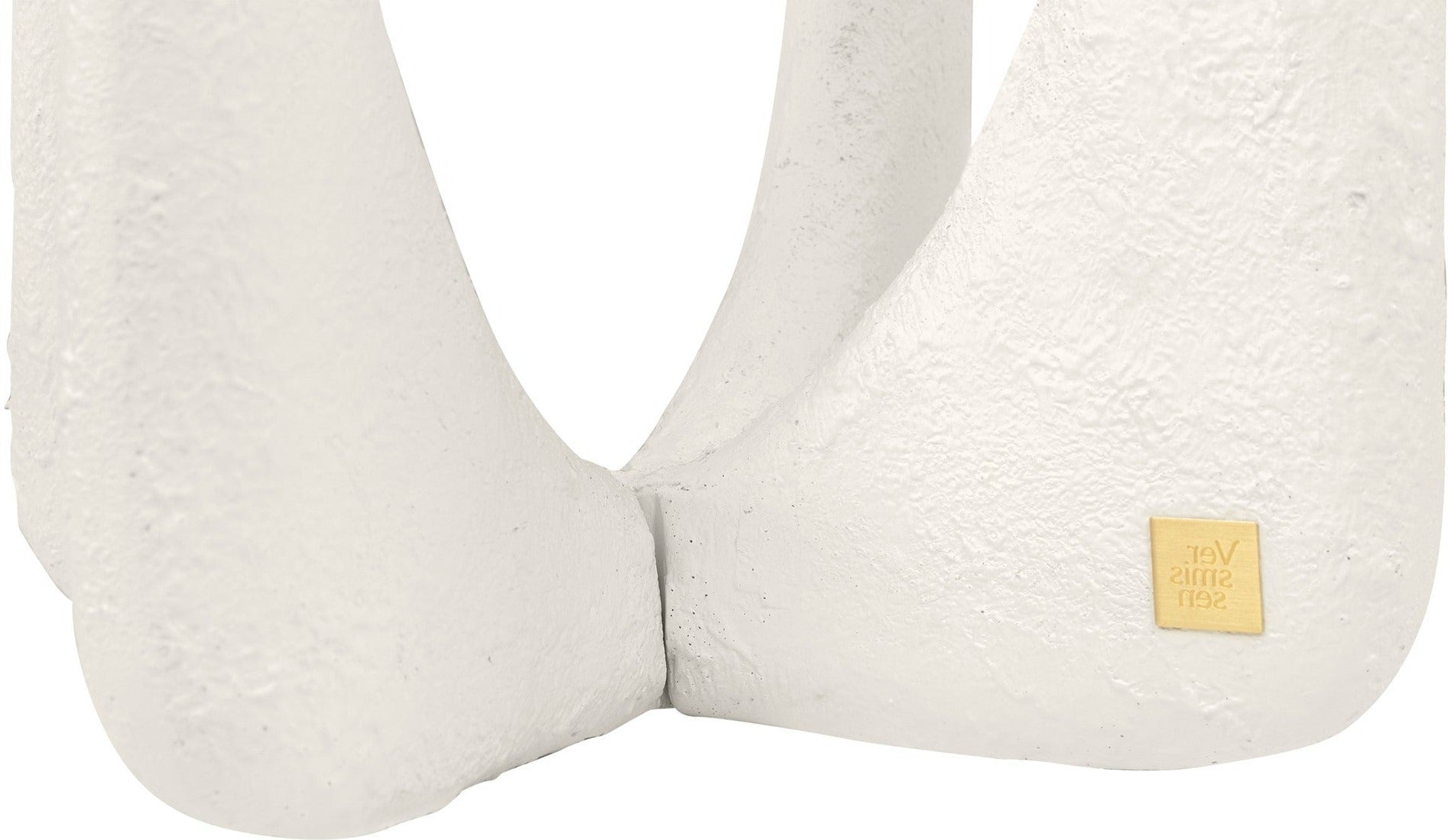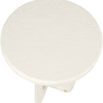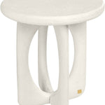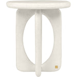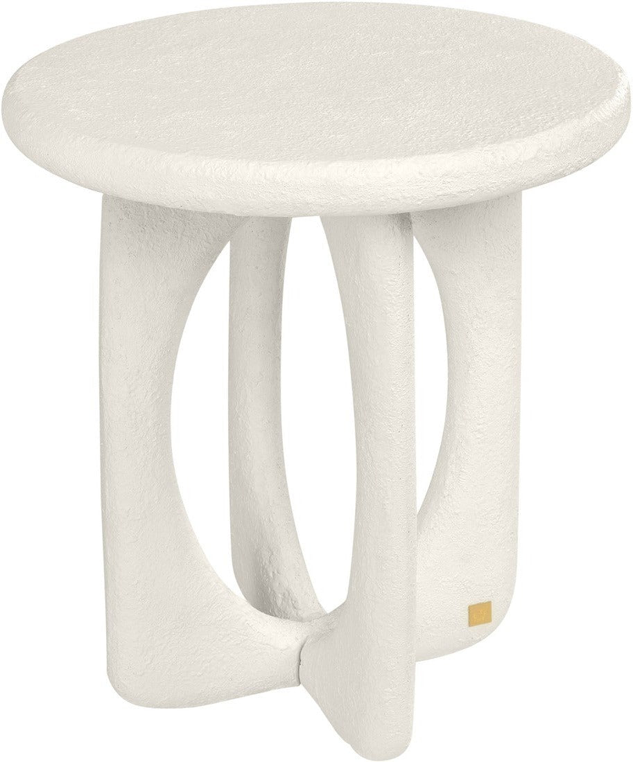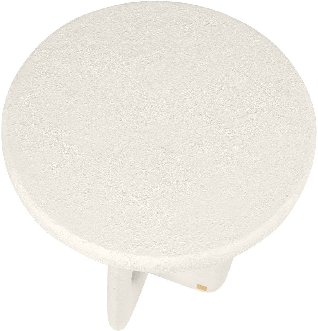 Crafted from white Glass-Reinforced Polyester, this table offers durability and resistance to everyday wear, ensuring a long-lasting addition to your space. Its round tabletop, supported by a unique crossover frame, is accentuated by captivating oval cutouts for added geometric appeal you are sure to love.