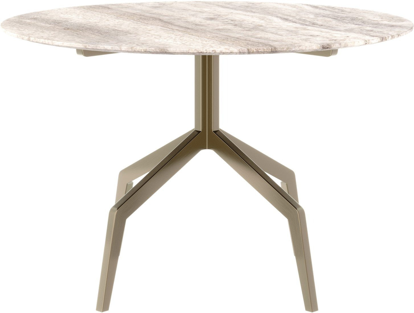 Baudillane Dining Table with Grey Travertine and Brushed Bronze Legs – 120cm