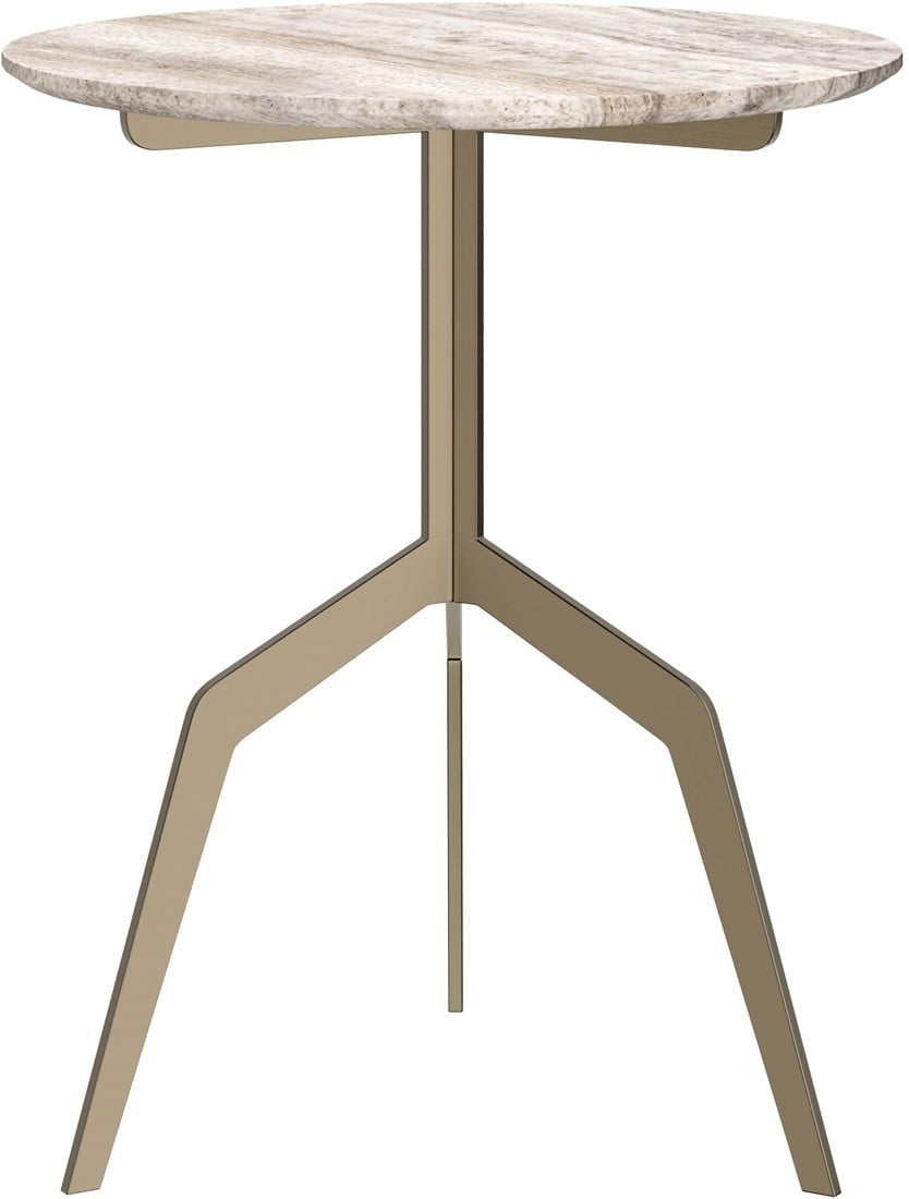 Baudillane Occasional Table with Grey Travertine and Brushed Bronze Metal Legs