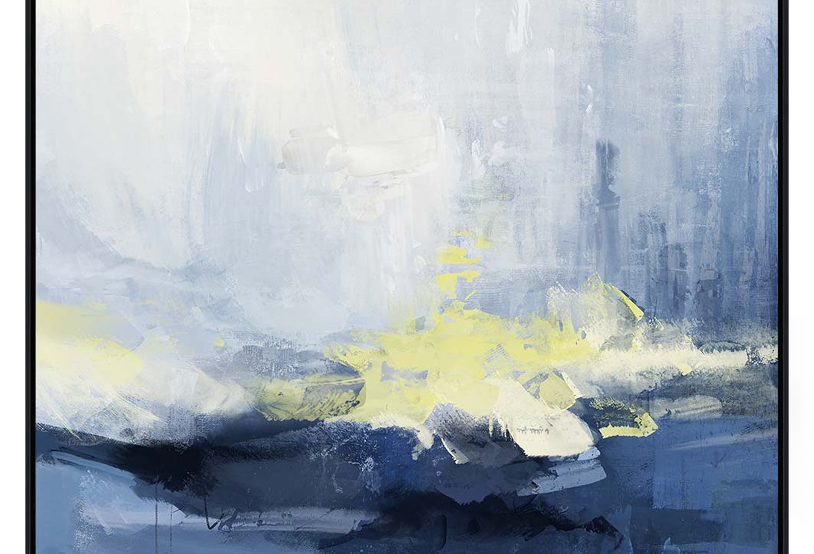 With varying shades of blue, white, and yellow, this stunning oil on canvas evokes the image of a volatile sea at storm. It features a mix of brush strokes and palette knife marks to further the chaotic energy it exudes whilst also adding an extra layer of depth and texture to its design.