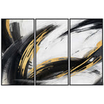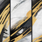 Boasting a warm blend of sweeping black and gold brushstrokes and palette knife textures, this trio of prints will create a mesmerizing display in your room of choice. Each print is impactful enough to stand on its own, but they come together seamlessly to form a visually striking masterpiece that will elevate your interior in an instant.