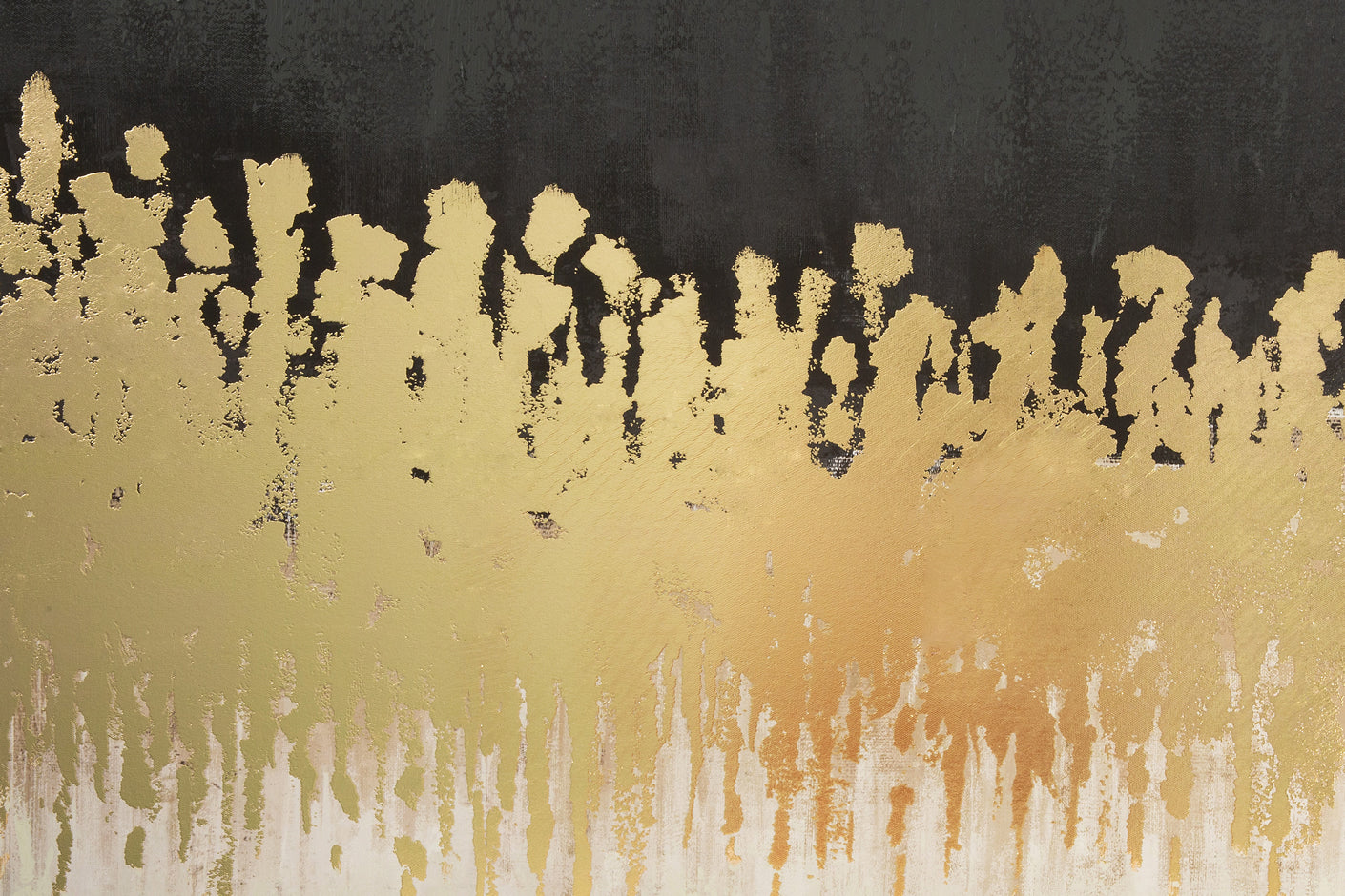 Each hand-finished stroke unveils a tapestry of texture and emotion, courtesy of the varied brushwork and palette knife flourishes. The allure of the ombre transition, moving from dark to light, is accentuated by a luxurious band of gold detailing that seamlessly traverses the centre, providing a bold yet opulent contrast.