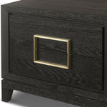Crafted from a smooth, dark brown oak veneer, this chunky bedside table is a refined beauty that enhances your interior without overshadowing it. Featuring two sizeable drawers, the Lucca Bedside Table is not lacking storage space – there is plenty of room for your glasses, beauty products and latest bedtime read. Sleek, brass handles adorn each drawer, coming together to form an elegant rectangle in the centre of the piece for that little bit of added glamour.