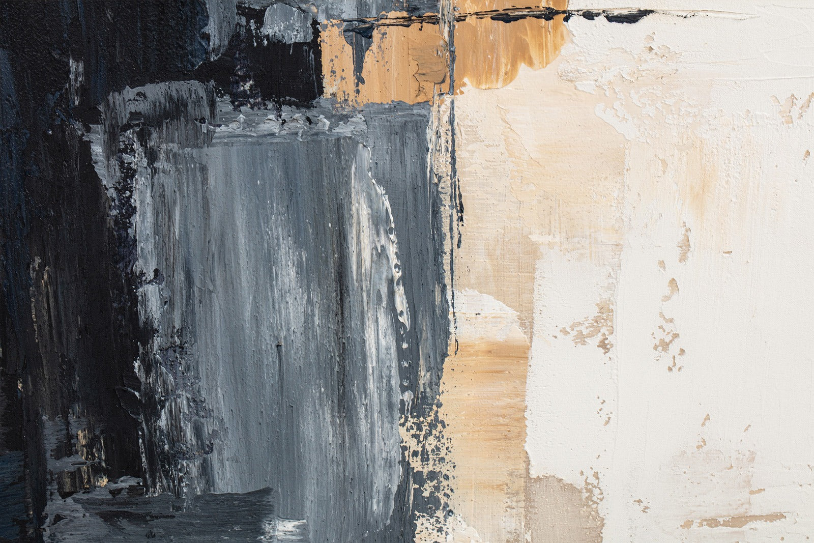 This captivating abstract piece features a dynamic interplay of light and dark neutral tones, creating a striking yet harmonious composition. Hand-finished with palette knife textures, the layered brushstrokes add depth and movement, making it a compelling focal point for any interior. Encased in a sleek wooden frame, it exudes contemporary elegance, effortlessly complementing both minimalist and bold décor styles.