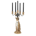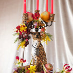 Making a bold impression in any room of the house, the Proudly Crowned Panther Candle Holder is brimming with playful character. Made from a combination of electroplated iron and painted resin, this panther exudes a majestic sense of power. A five-armed chandelier sits atop the panther’s head like an elegant crown, displaying your choice of colourful or white candlesticks.